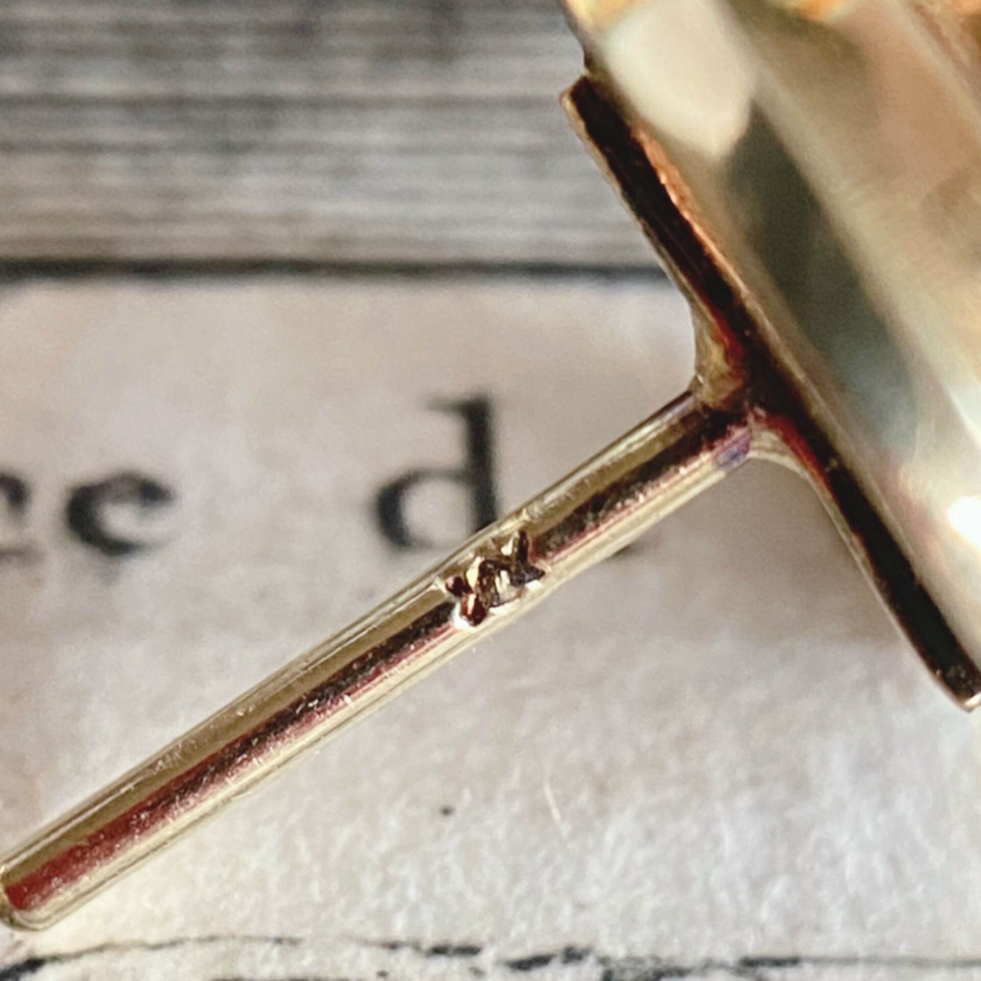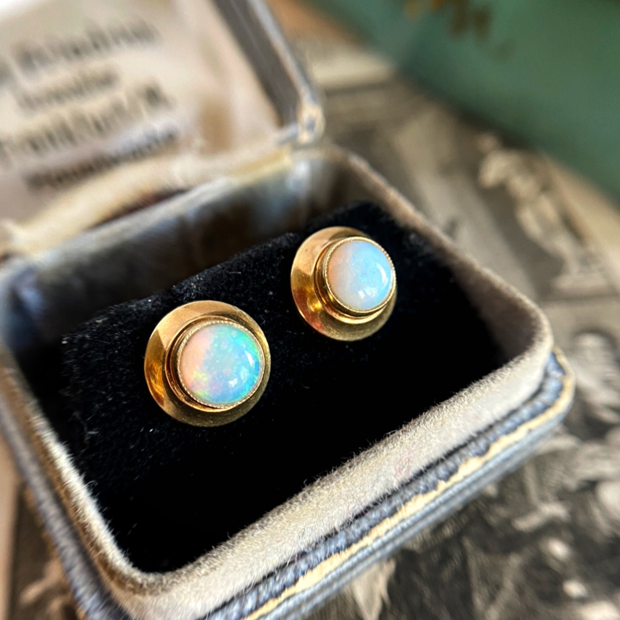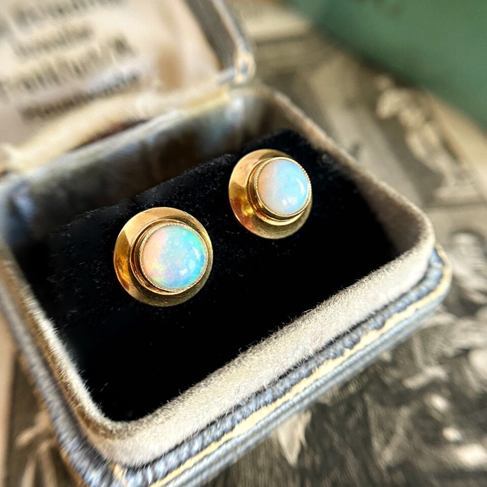 19世紀後半にイギリスの植民地であったオーストラリアで鉱山が見つかった事により多くの最上級のオパールがイギリスに入り、ヴィクトリア女王も率先してその七色に光る魔法にかけられたようなミステリアスな石を好んで身につけていました。オパールは非常に柔らかな性質でデリケートな為アンティークの物になると表面がマットで輝きが薄れてしまっている事が多くありますが、こちらも時の経過分のマット感が多少なりともありますが、内側から光る美しいオレンジやグリーン、ブルーは健在。