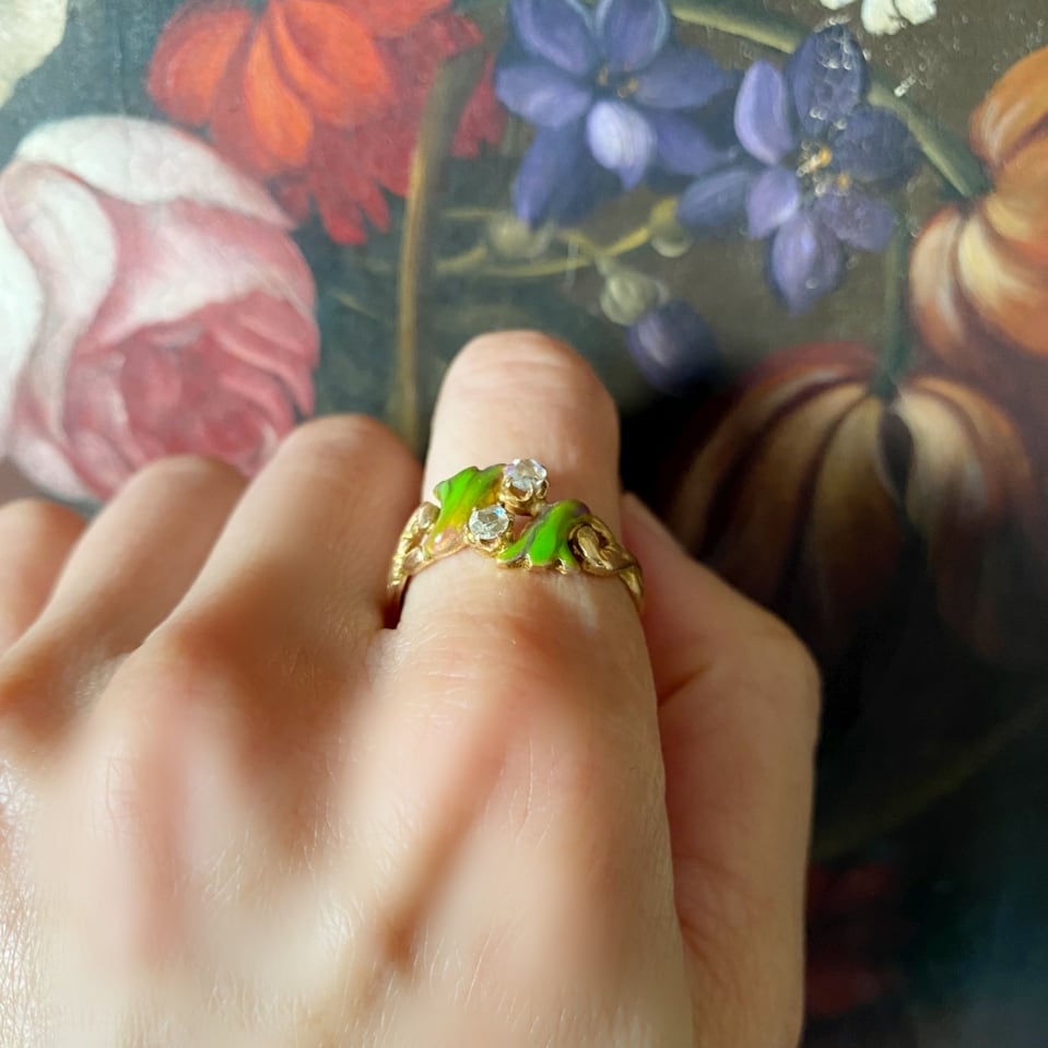 ローズカットダイヤモンド トワ•エ•モワ アールヌーヴォーリング