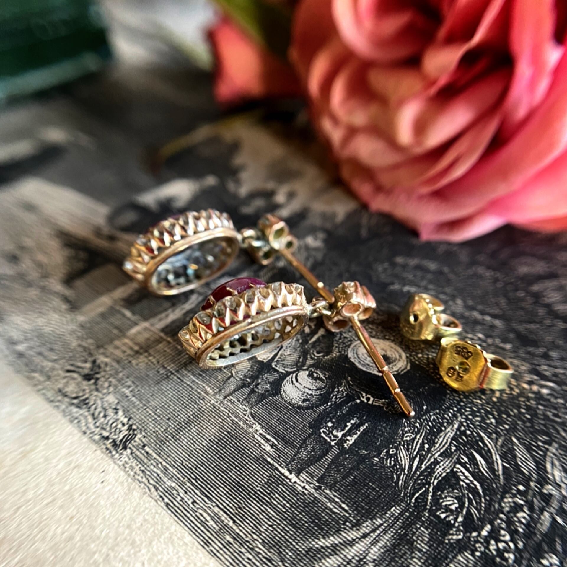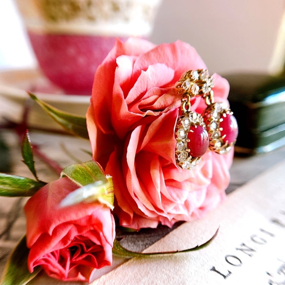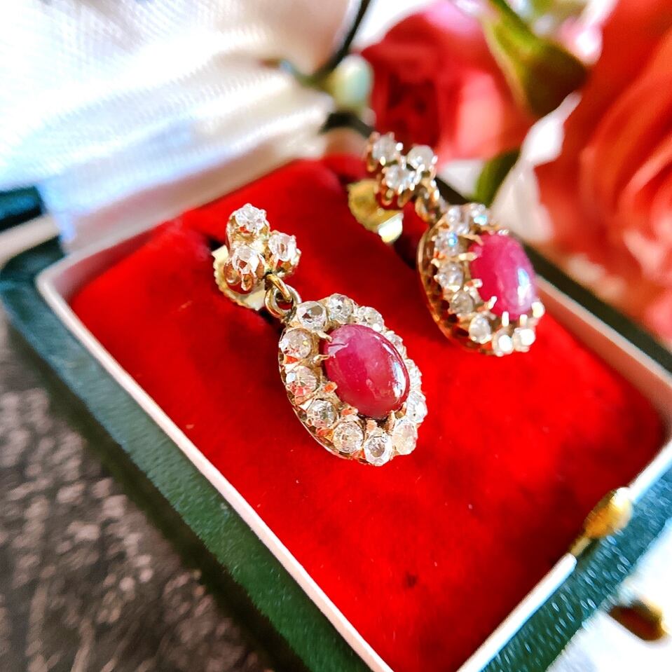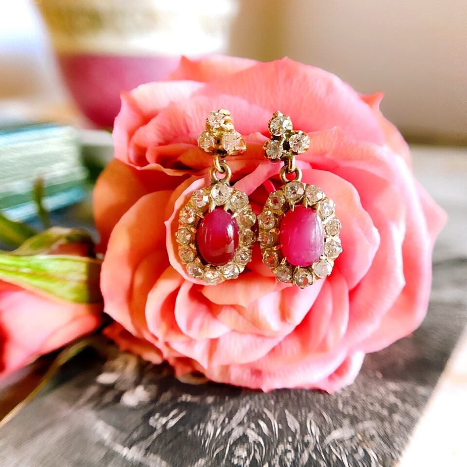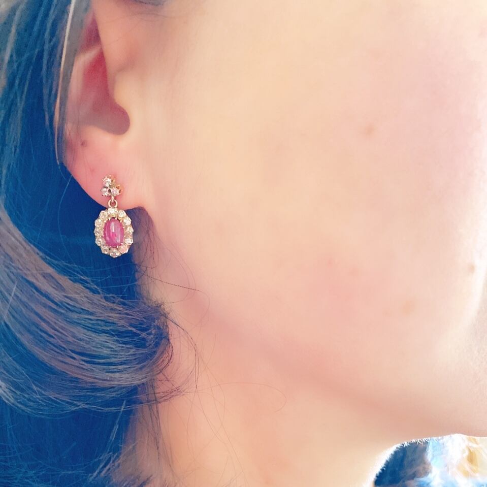 ナチュラルカボションルビー&オールドマインカットダイヤモンドピアス