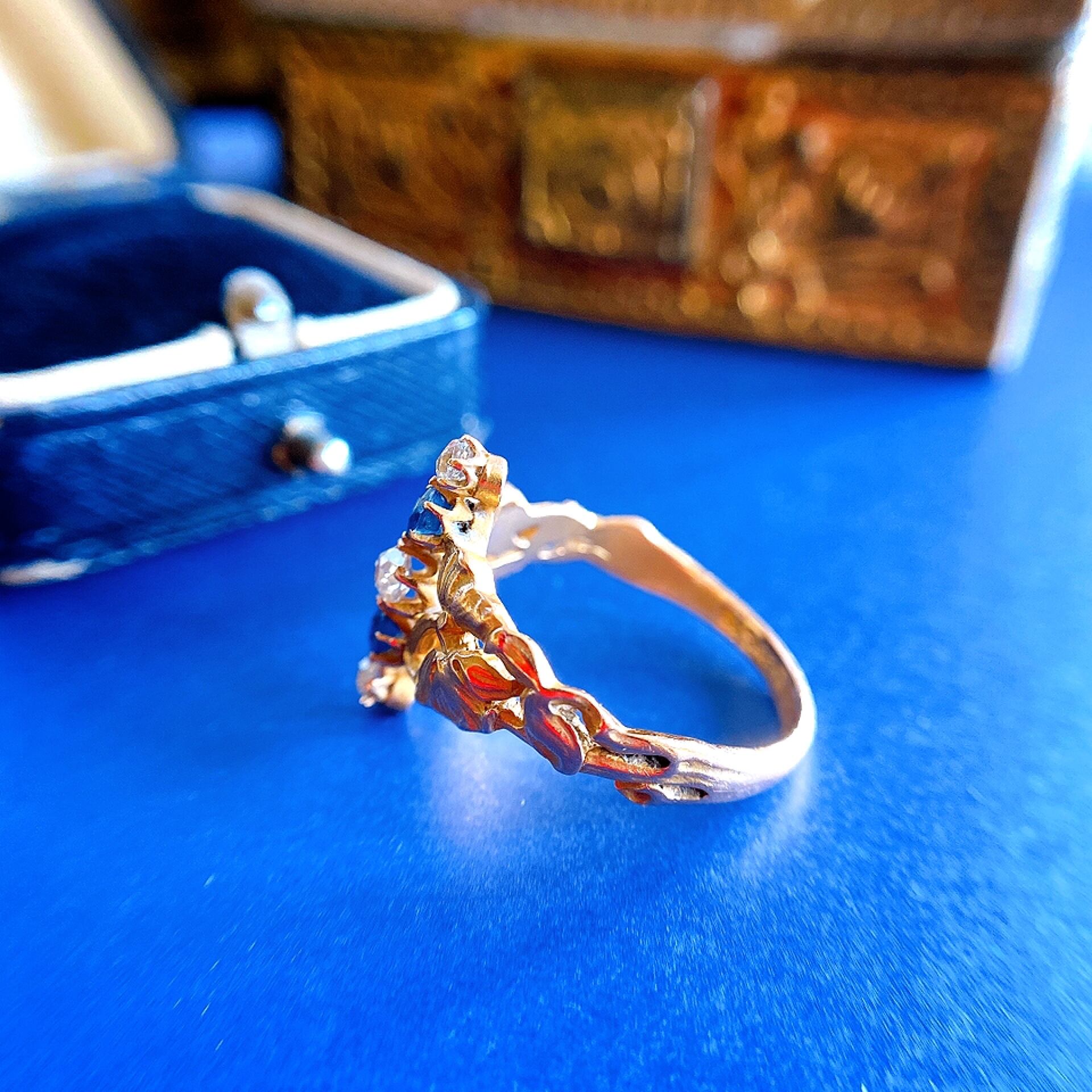 19世紀末アールヌーヴォーファイブストーンアイリスリング