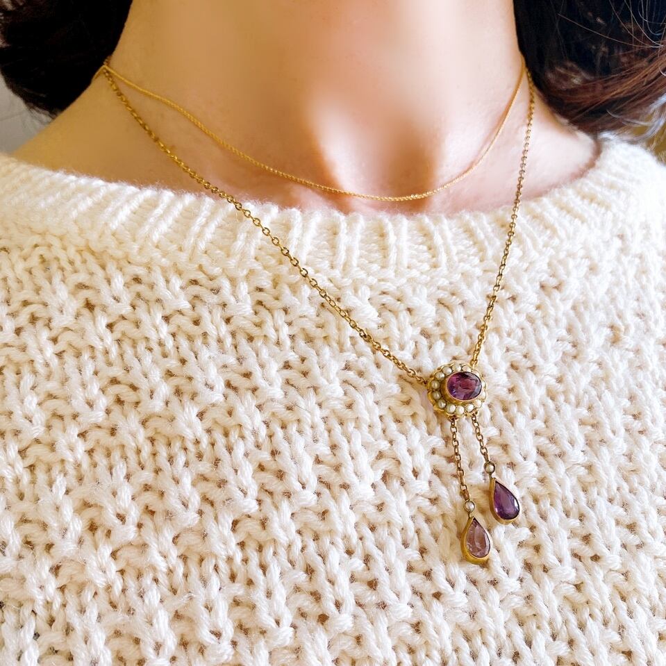 アメシスト&シードパールヴィクトリアンペンダントネックレス