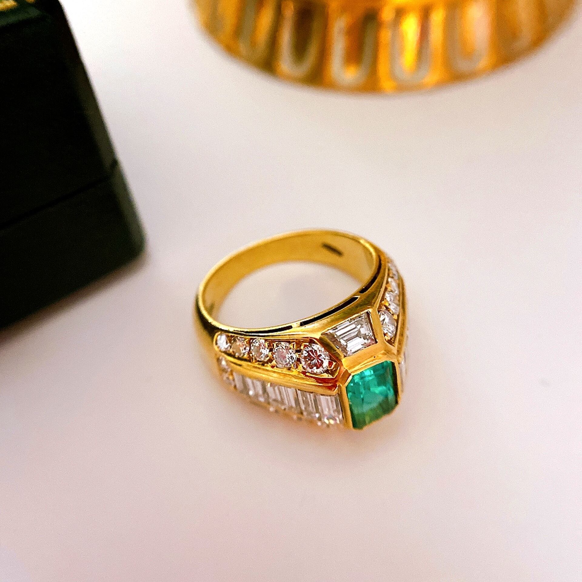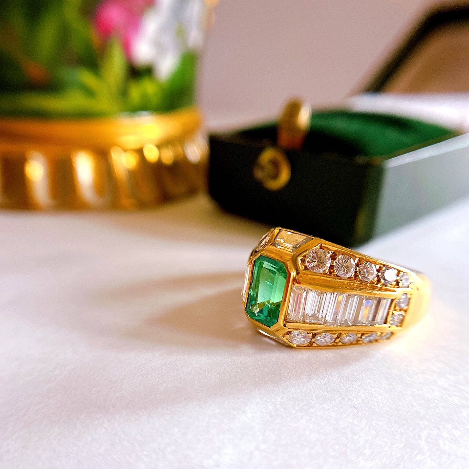 ポストアールデコ 天然エメラルド&ダイヤモンドリング(ソーティング付き)