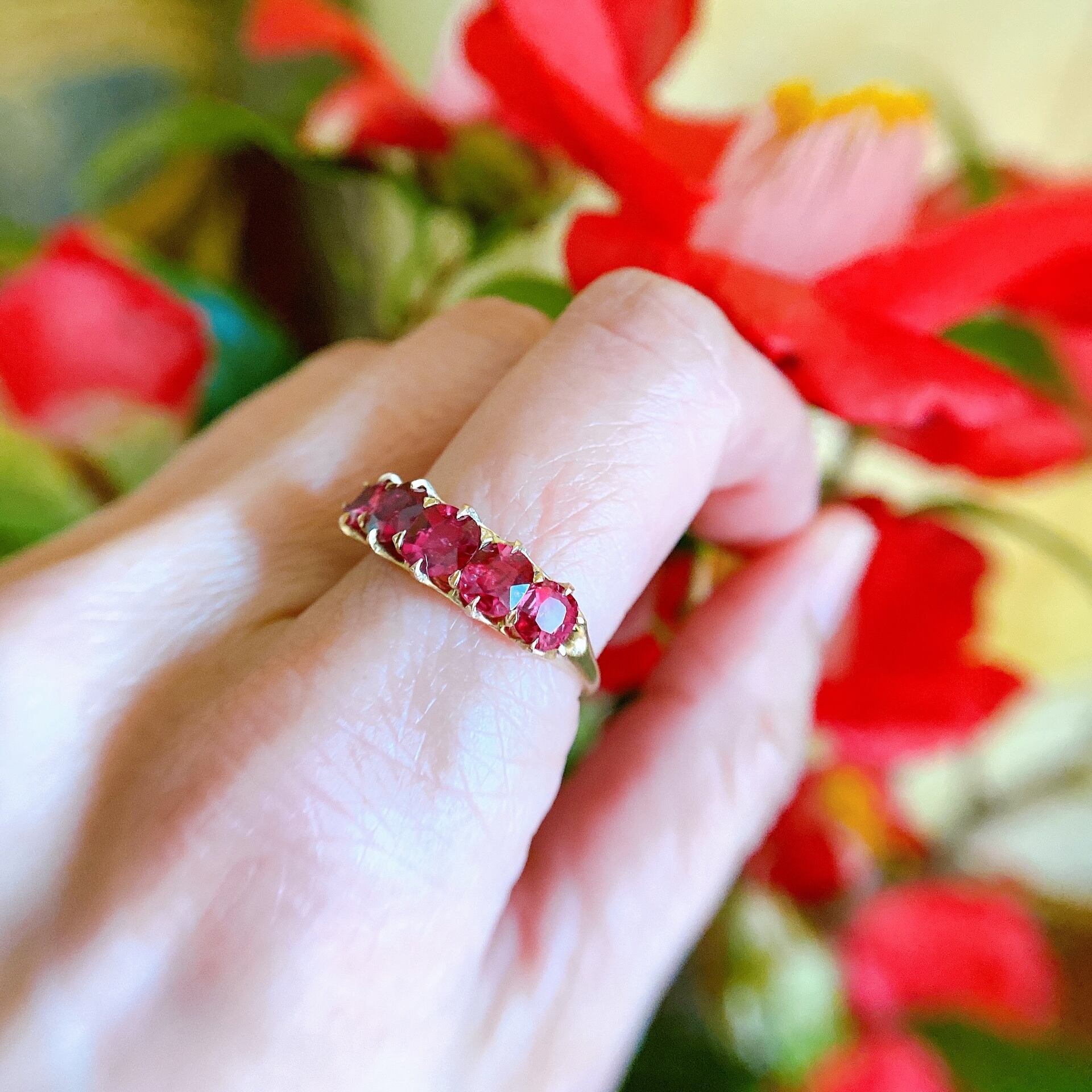 S様決済専用 非加熱ルビーファイブストーンヴィクトリアンリング(英国鑑定書付き)