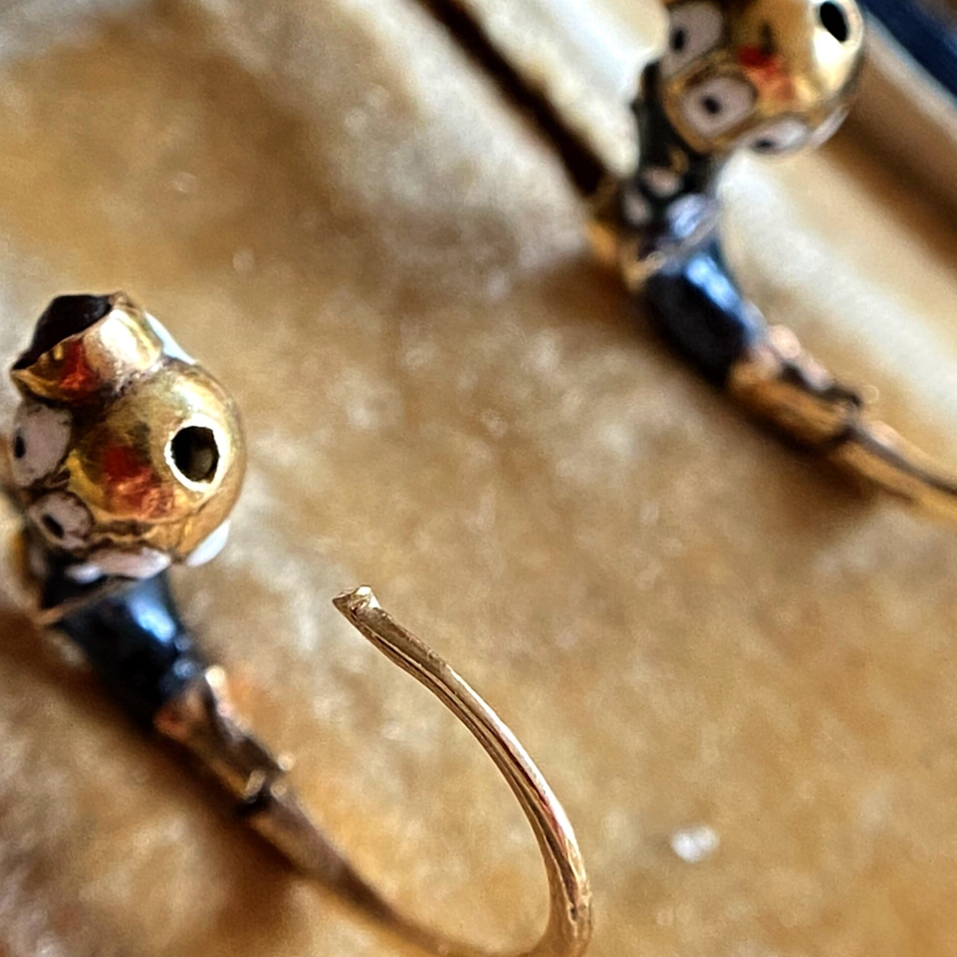 構造的には、ムーア人の頭に穴が空いていてその中に留め金を入れて固定させるという、あまり見かけない留め方になります。また、ドルムーズの為針を耳たぶの後ろから前に通し、耳たぶに固着するタイプのピアスになります。その為慣れないと着脱が少々難しいかもしれないです。