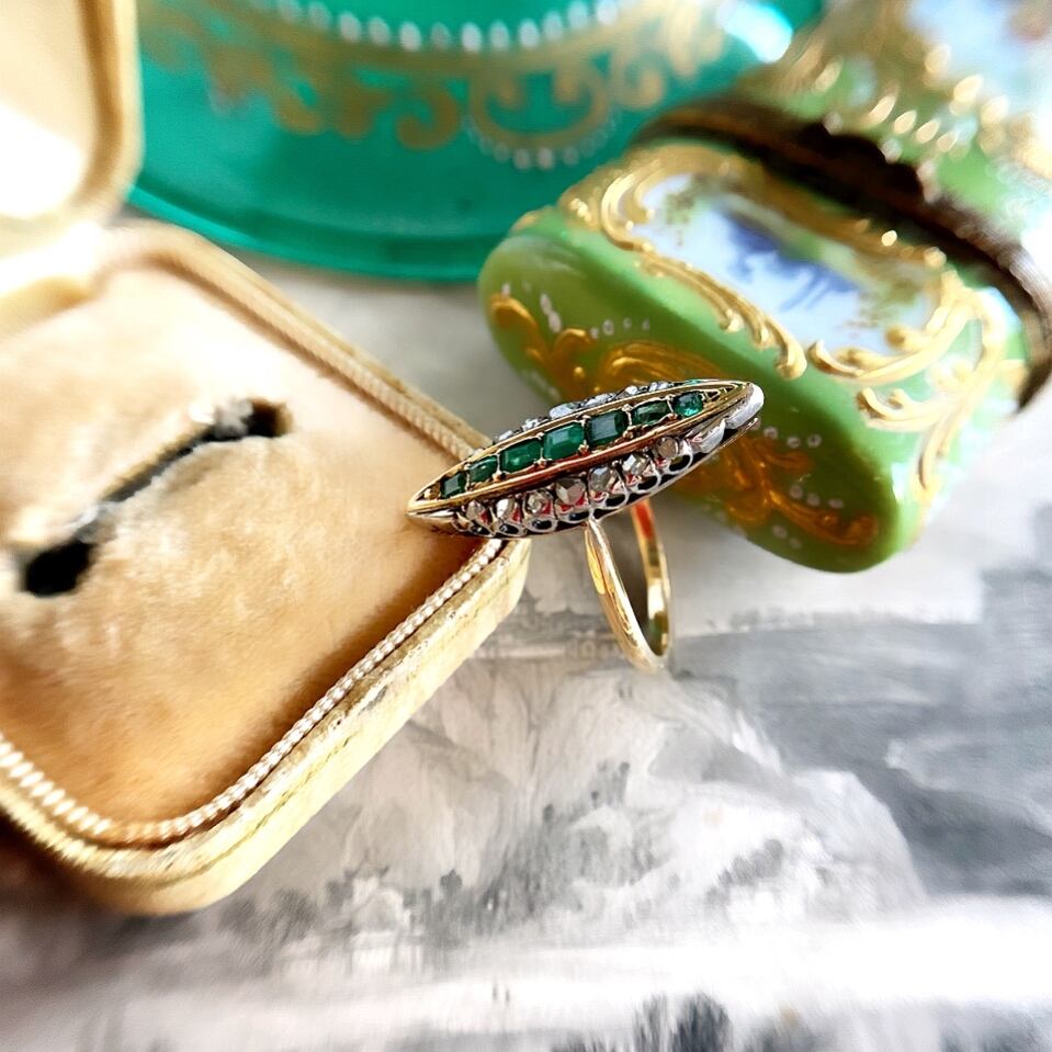 エメラルド&ダイヤモンドマーキーズフレンチリング