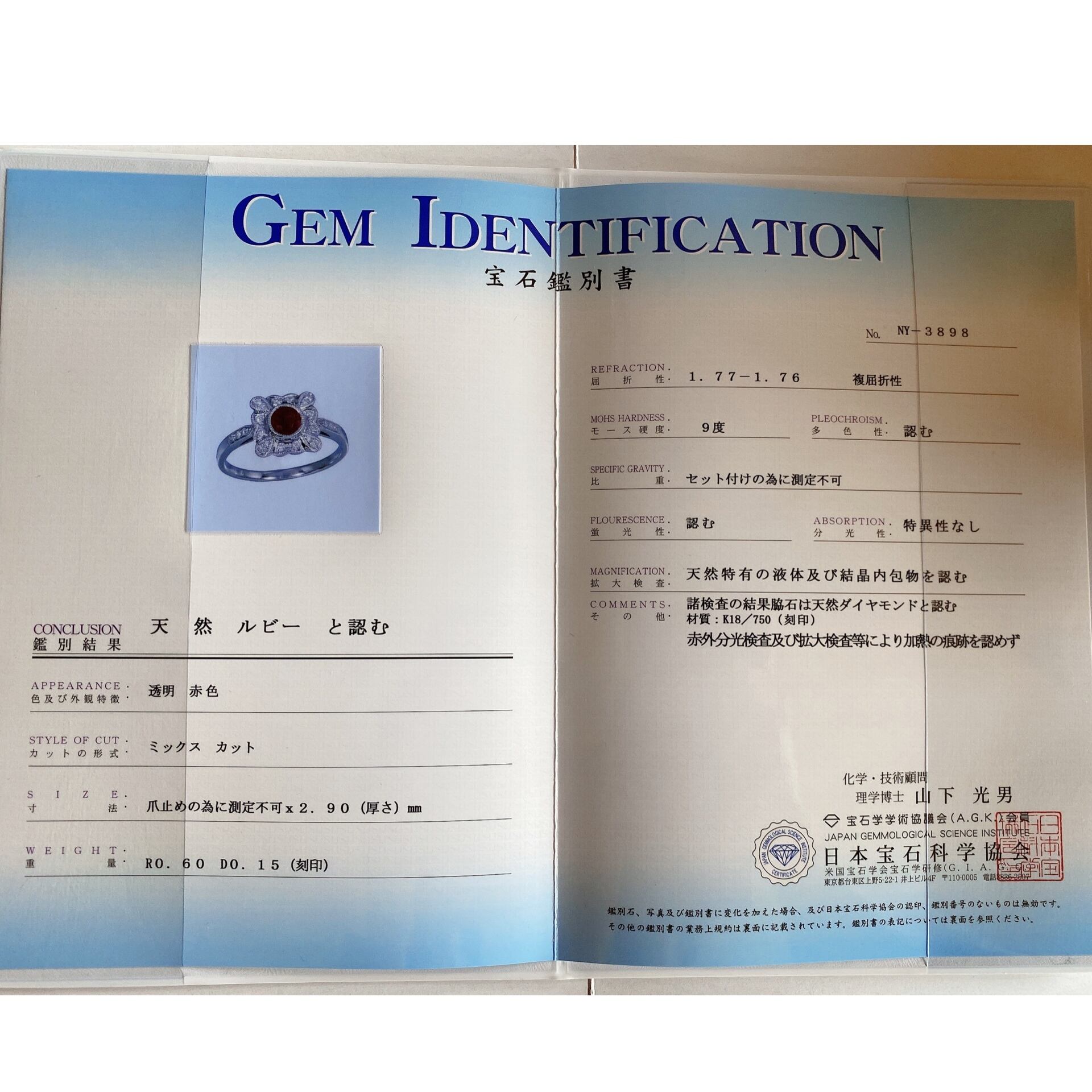 非加熱ルビーミルグレインヴィンテージリング(鑑別書付)