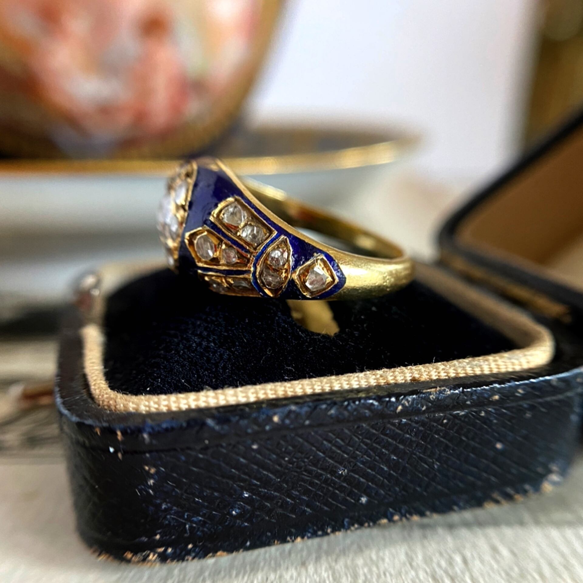 ダッチローズカットダイヤモンド&ロイヤルブルーエナメルヴィクトリアンリング