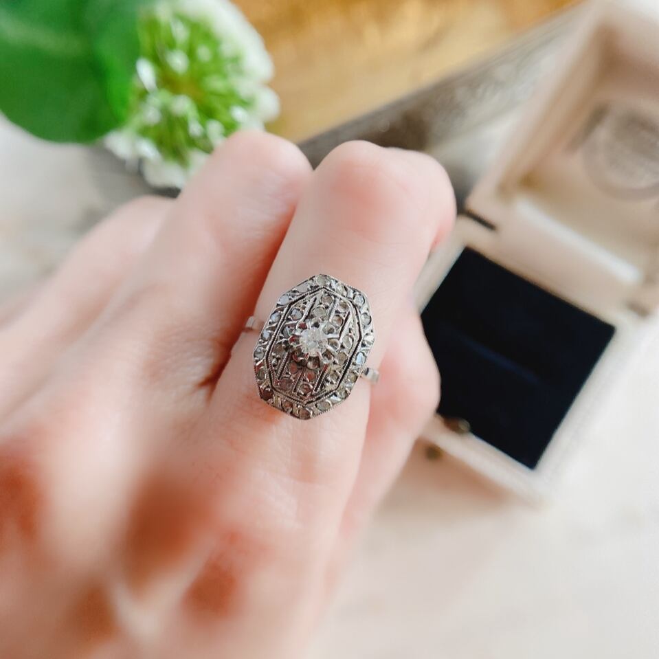 ダイヤモンドはルーペで見ますと擦れやキズがございます。それらを含めてアンティーク品特有の風合いとして感じていただける方のご購入をお願い致しております。m(_ _)m