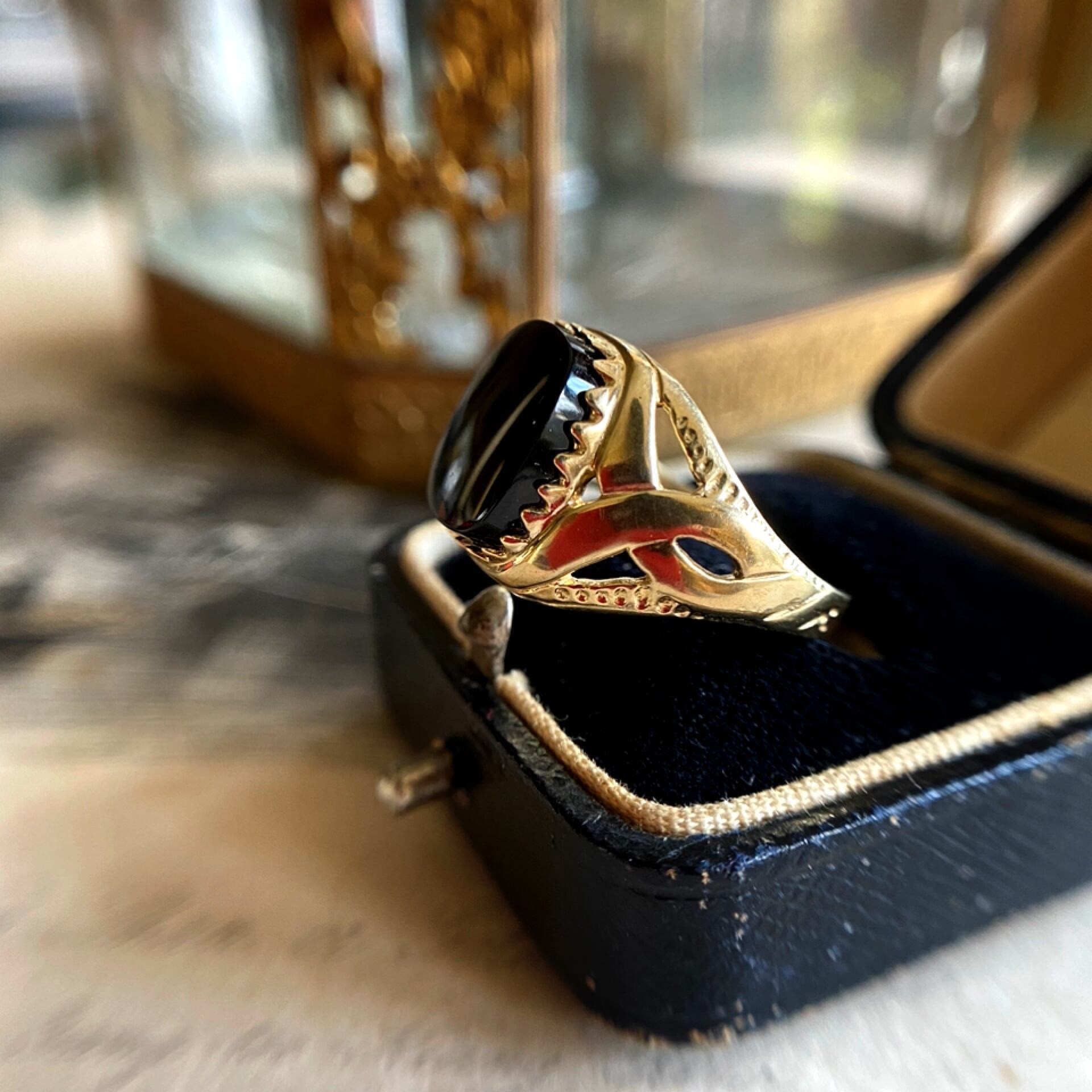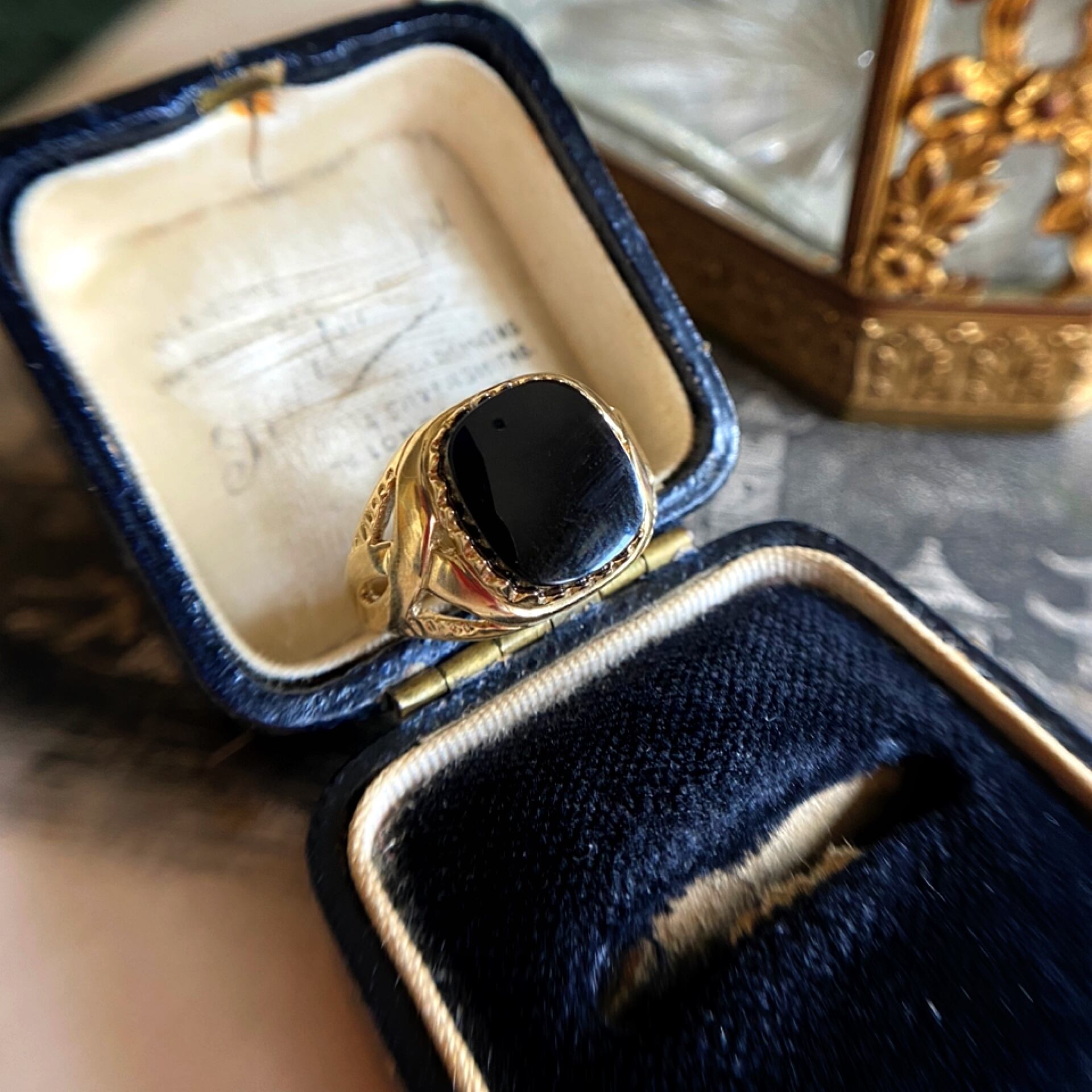 艶のあるシックな輝き、ブラック×ゴールドのかっこいいヴィンテージシグネットリングです。