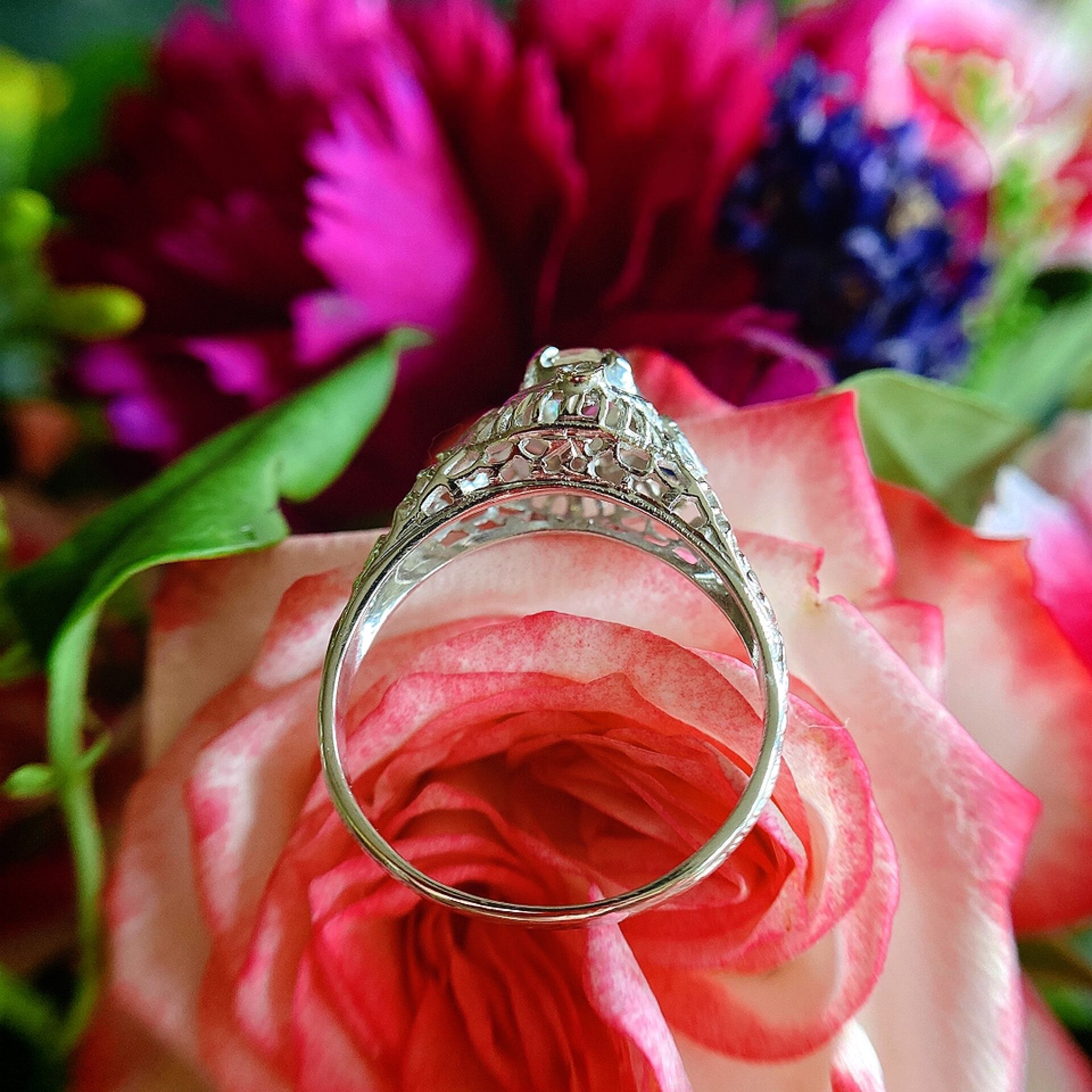 ダイヤモンドに更なる美しさを与えてくれているのがなんと言っても石を支えている透し彫りではないでしょうか。