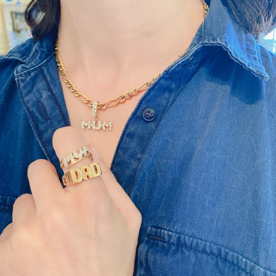 こちらのリングとペンダント、全て同じメーカーの物で、地金は9kゴールド、コスチュームジュエリーはゴールドプレートつまり金メッキが多いのですが、こちらは地金に金を使用していてクオリティーの高さを感じます。