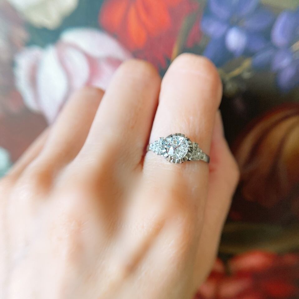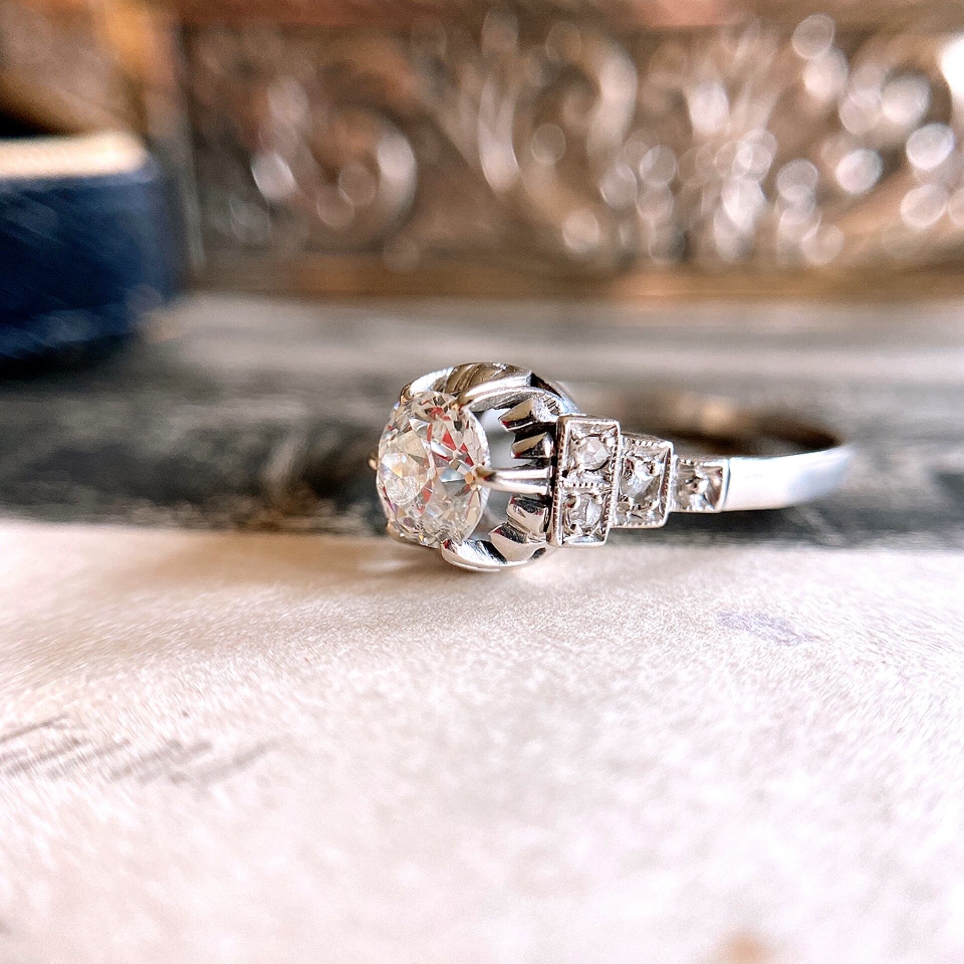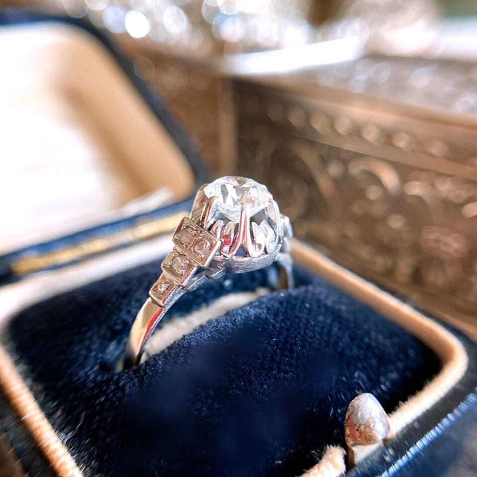 オールドヨーロピアンカットダイヤモンドアールデコプラチナリング