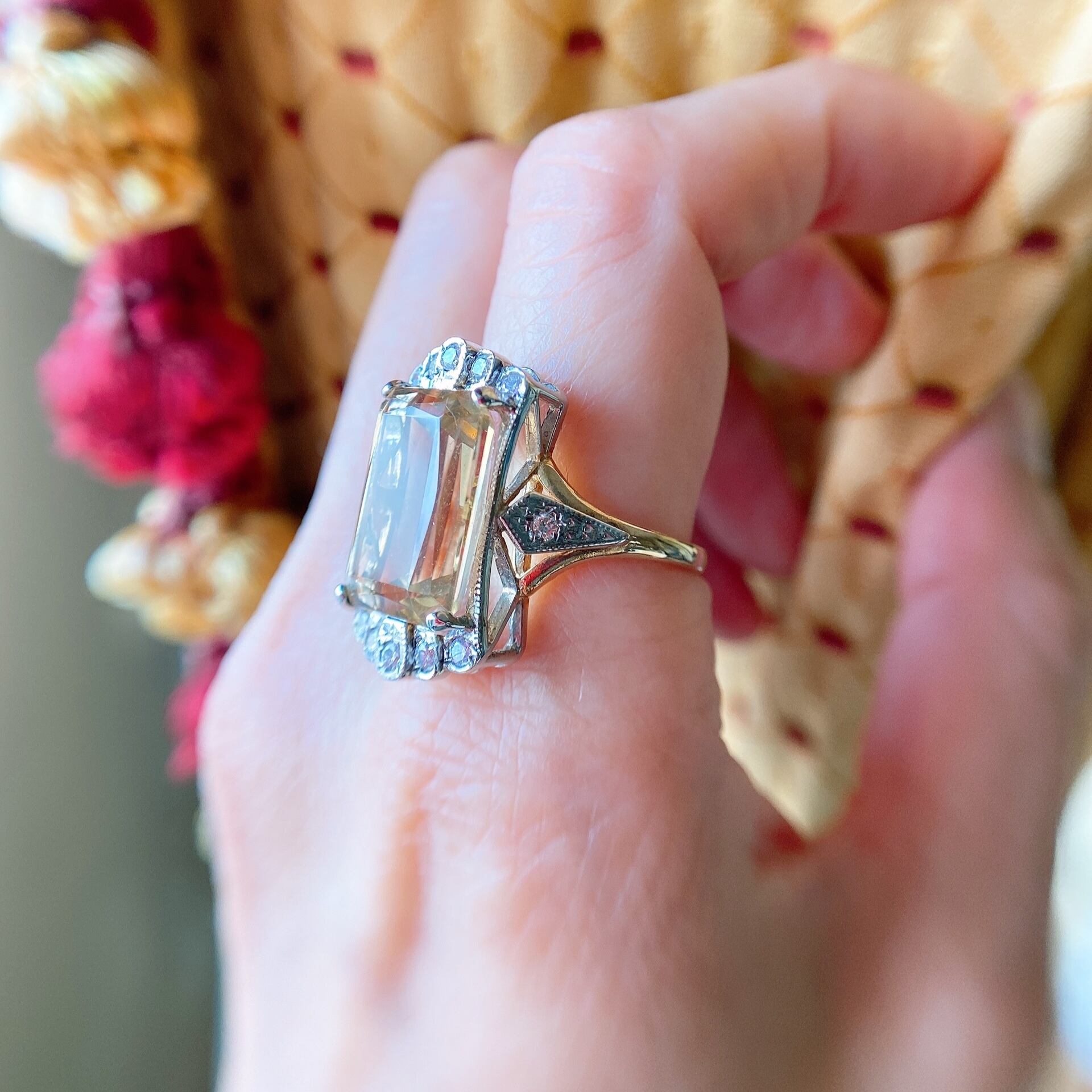 ハニーレモンのような、カモミールティーのような、お口に入れたくなってしまうシトリン&ダイヤモンドのポストアールデコリングのご紹介です。