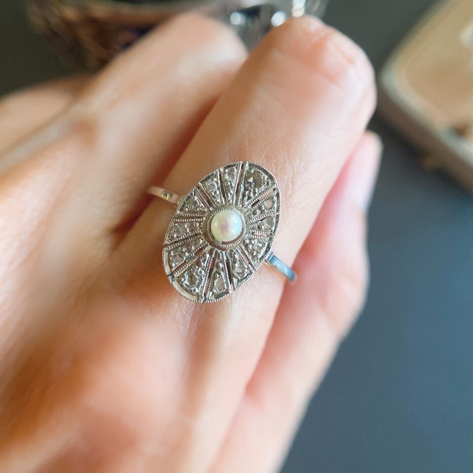 (T様専用となりました。)ベルエポックダイヤモンド&パール透し彫りリング