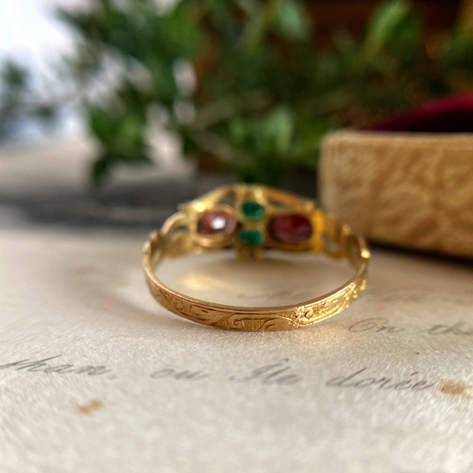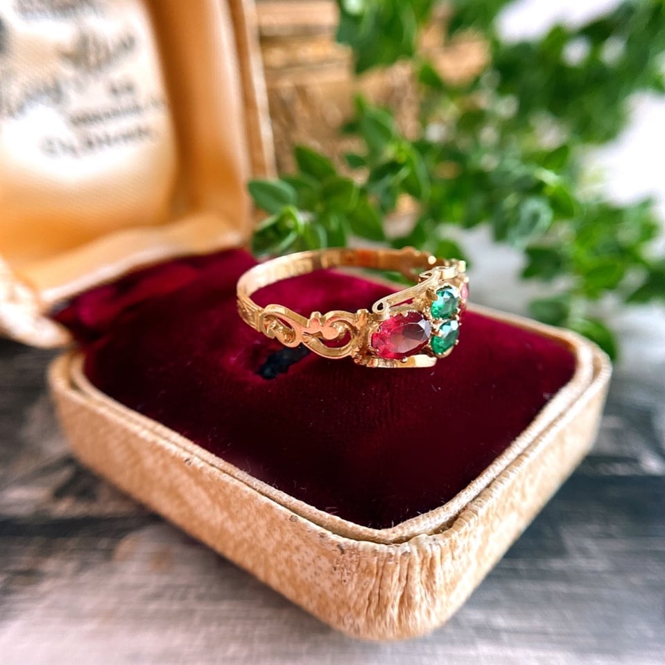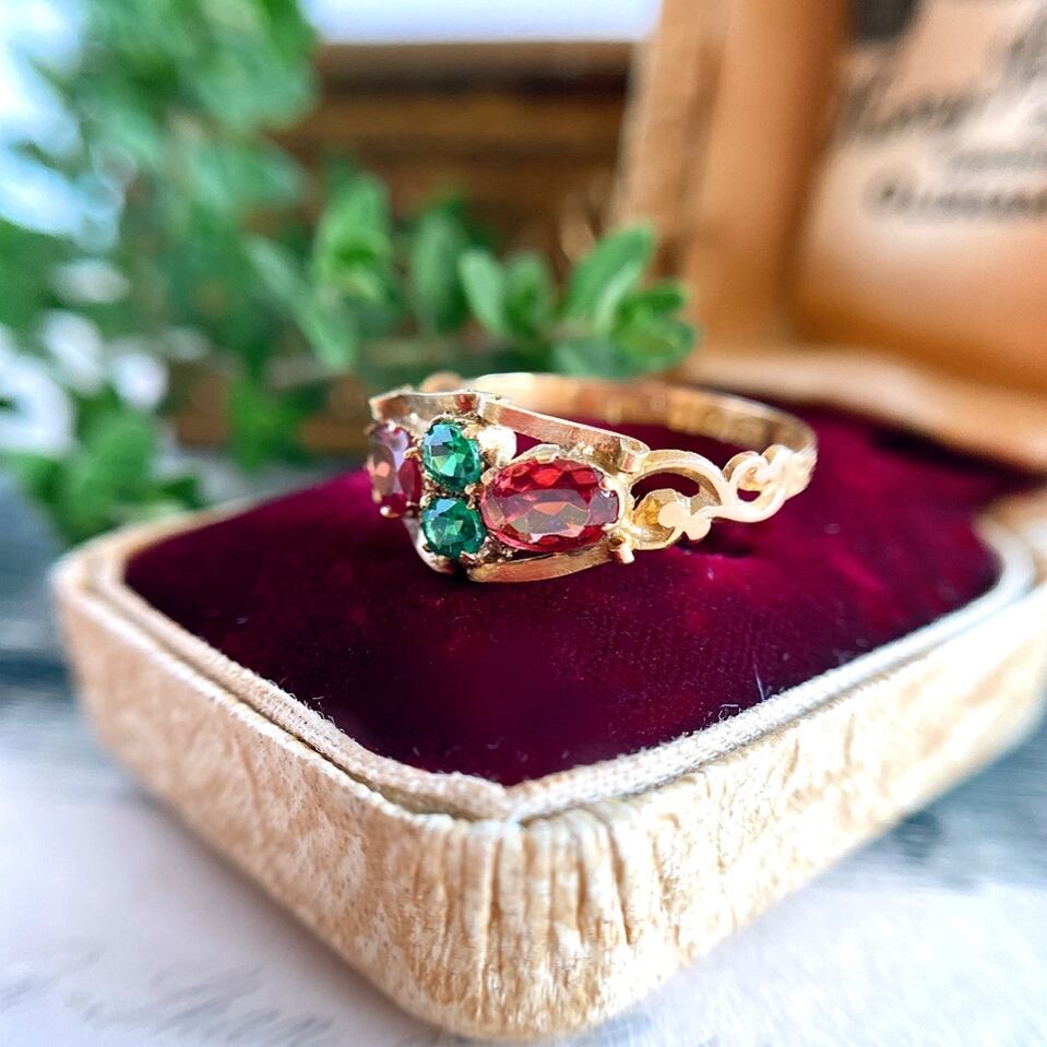 天然エメラルド&ガーネットアーリーヴィクトリアンリング