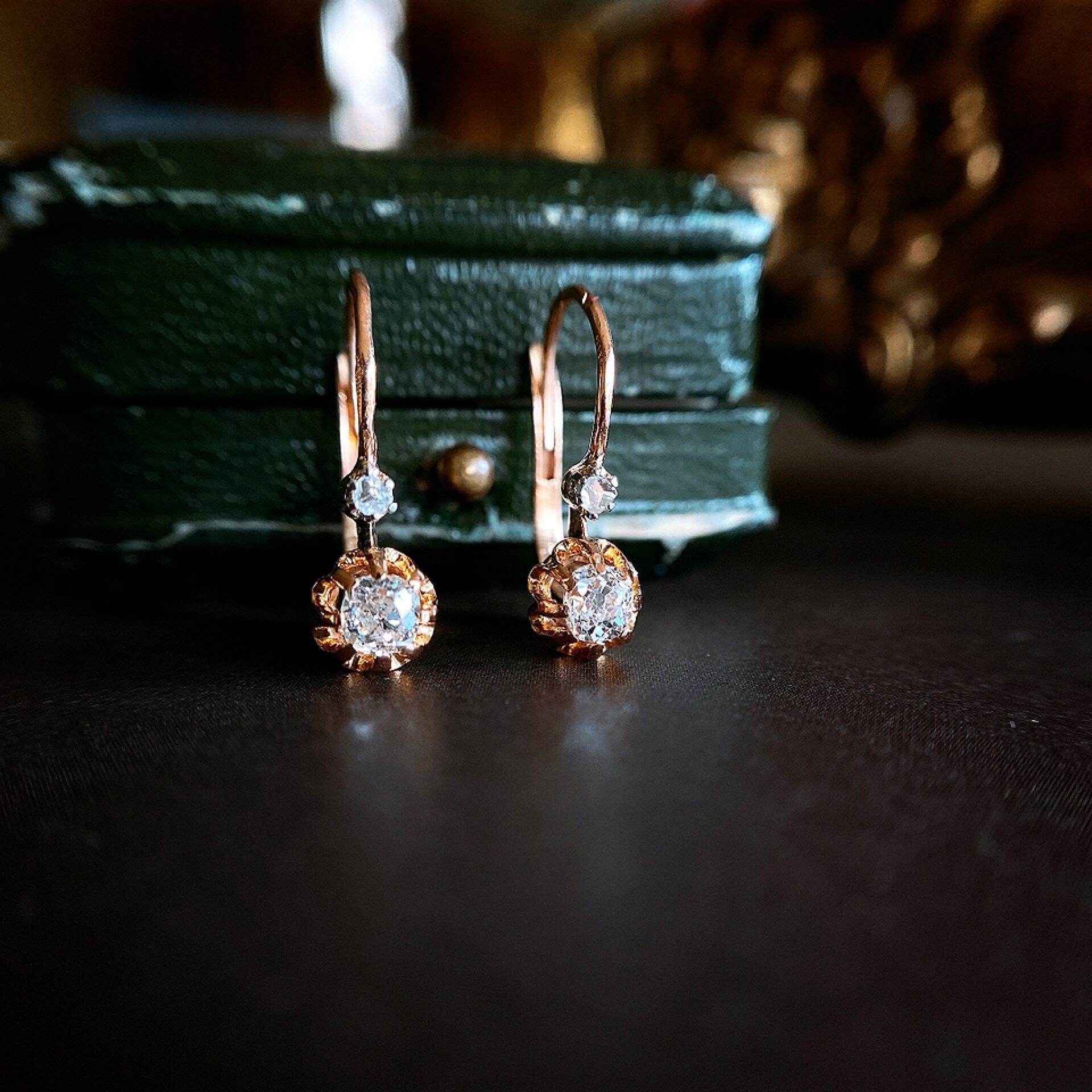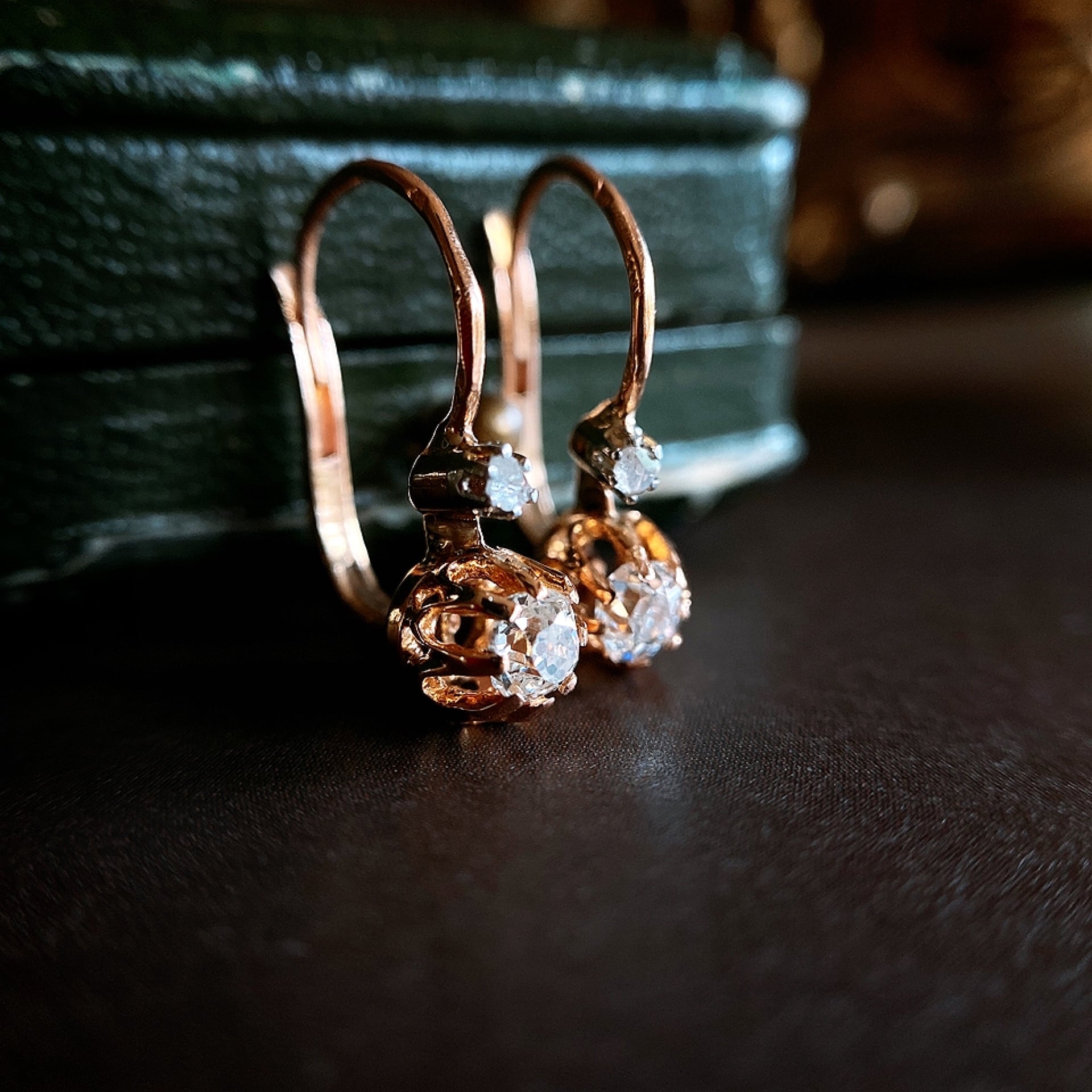 耳元でアンティークダイヤモンドの煌きが揺れる可憐なピアス。