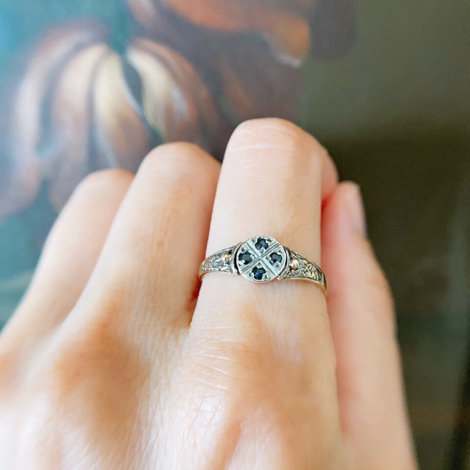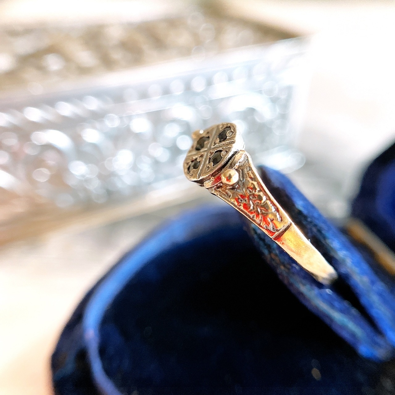 まるで中世のリングを思わせるクラフトマンのぬくもりを感じるアールデコリングはイスラエルで製作された物です。