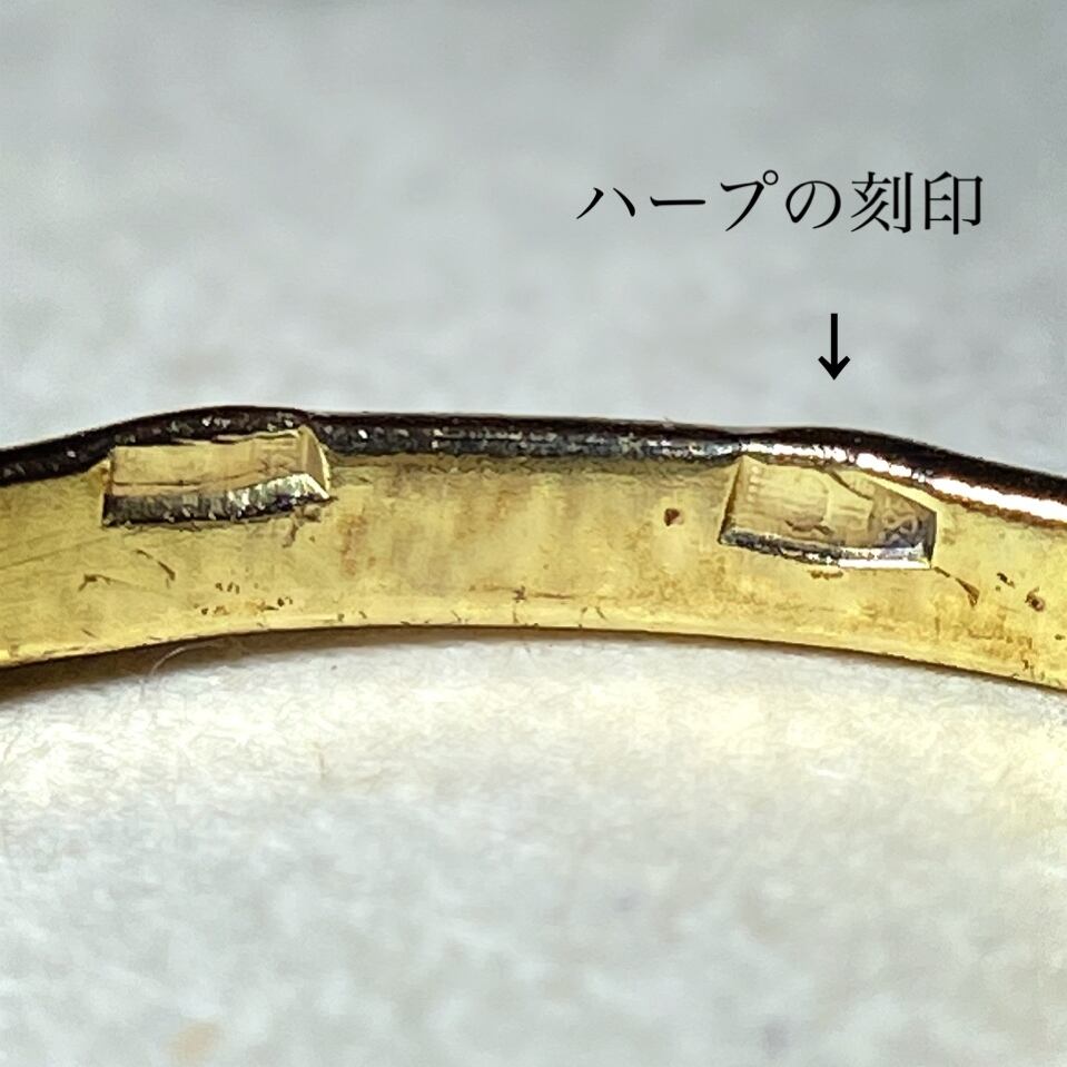 ※ 沢山刻印がございますが、585ゴールドの純度のマーキングの上にハープの刻印されており、こちらのリングがイスラエルで製造されたことの証です。