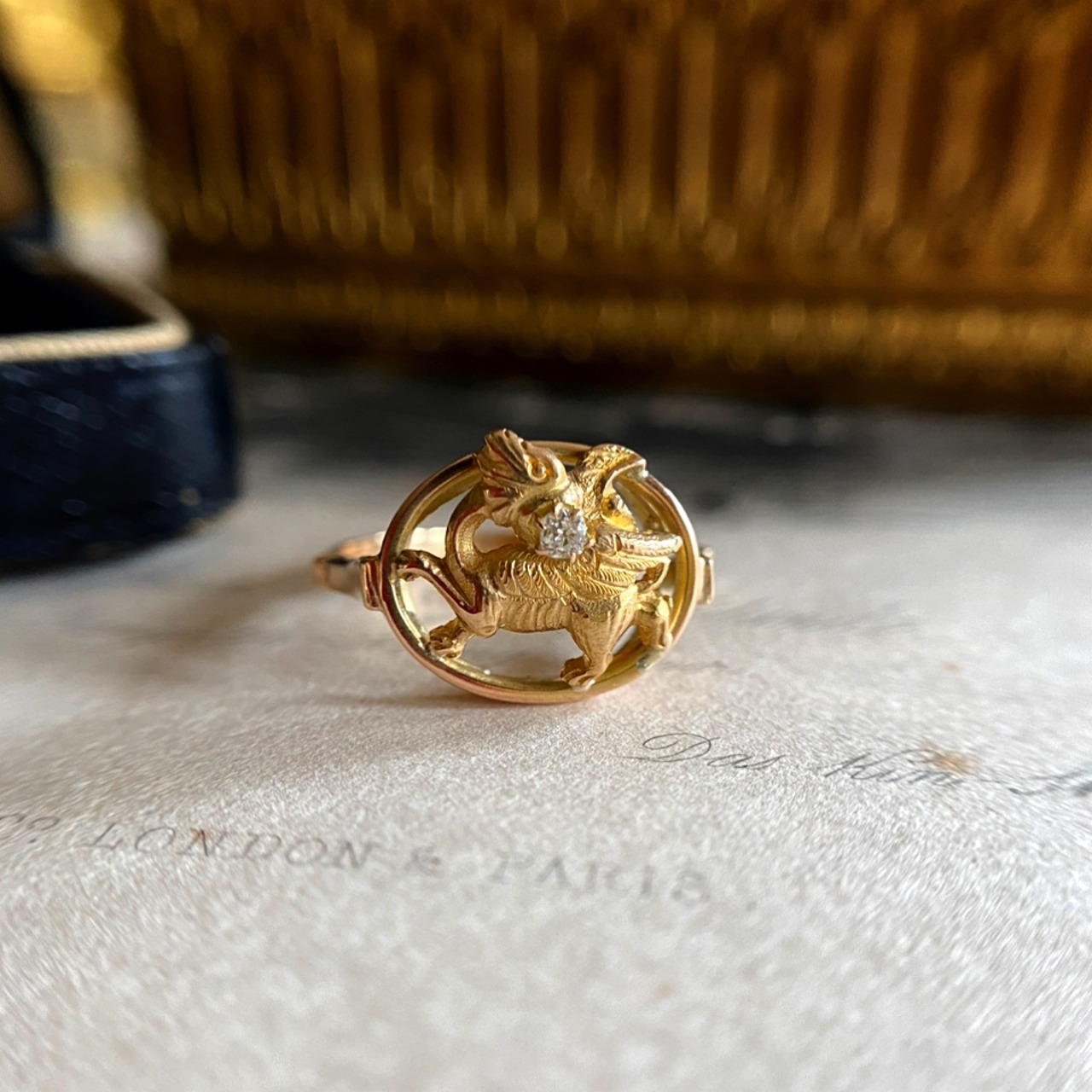 ハリーポッターの魔法学校の"グリフィンドール"ですが、フランス語に訳すと"金のグリフィン"となりますから、まさにこちらのリングのようですね。