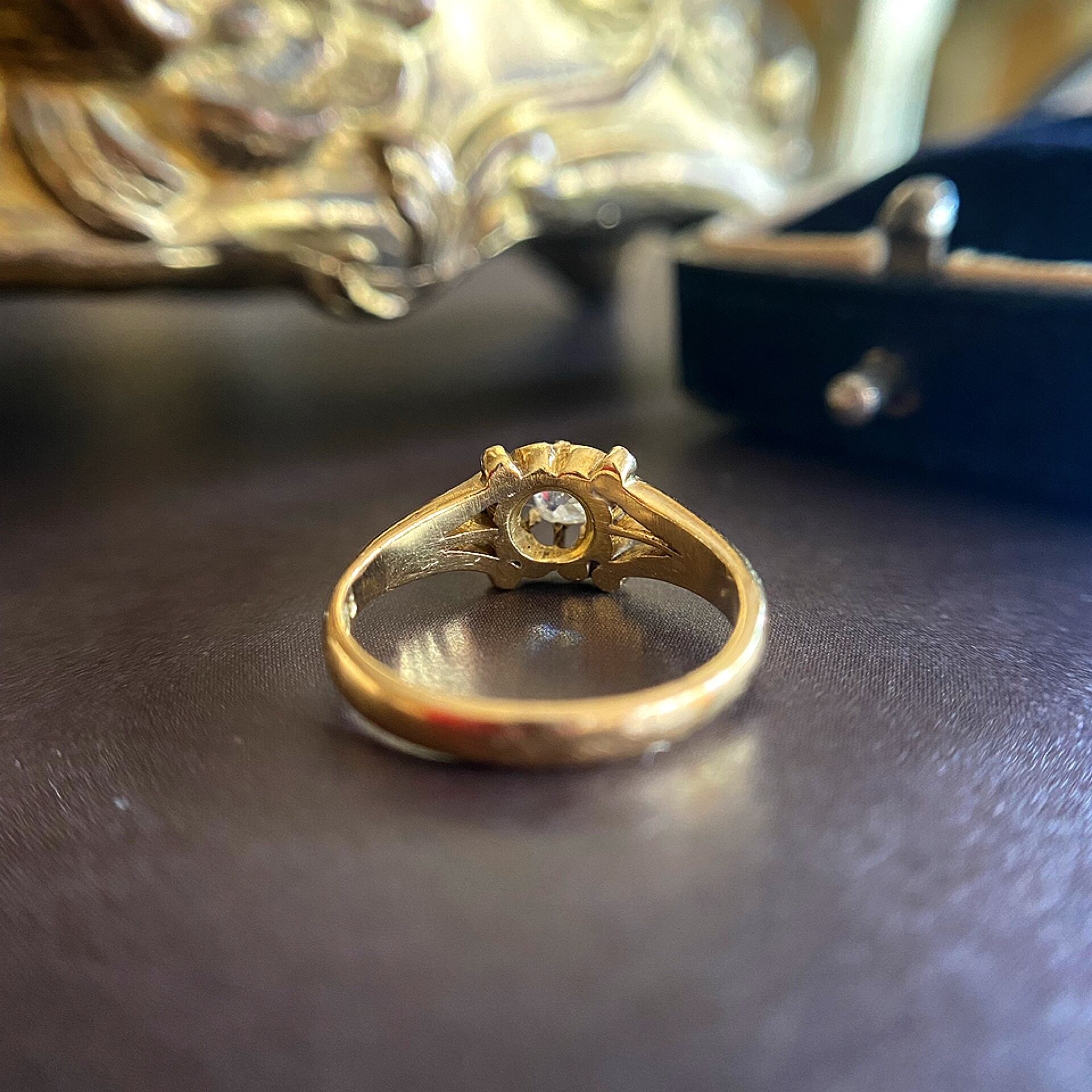 ダイヤモンド自体も美しく、現代のブリリアントカットとは違う品の良い瑞々しい光を放ち、円と四角の混ざった独特の形は、まさにオールドマインカットならではの美しさではないでしょうか。