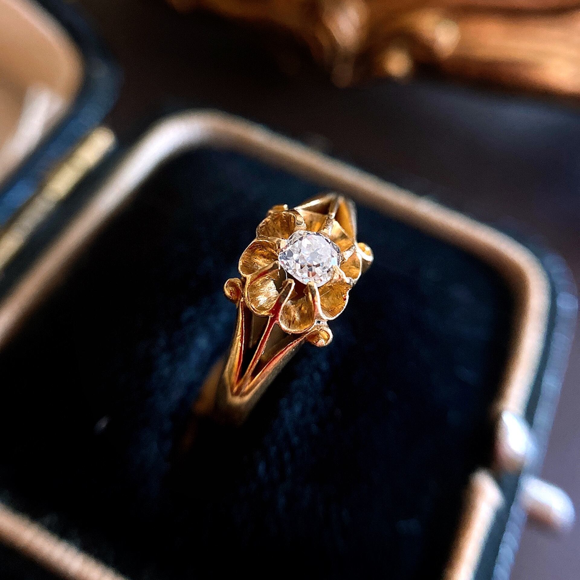 オールドマインカットダイヤモンドバターカップピンキーリング
