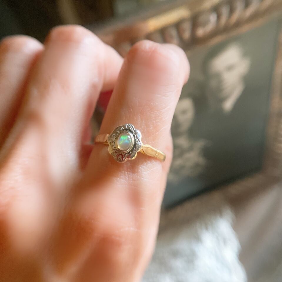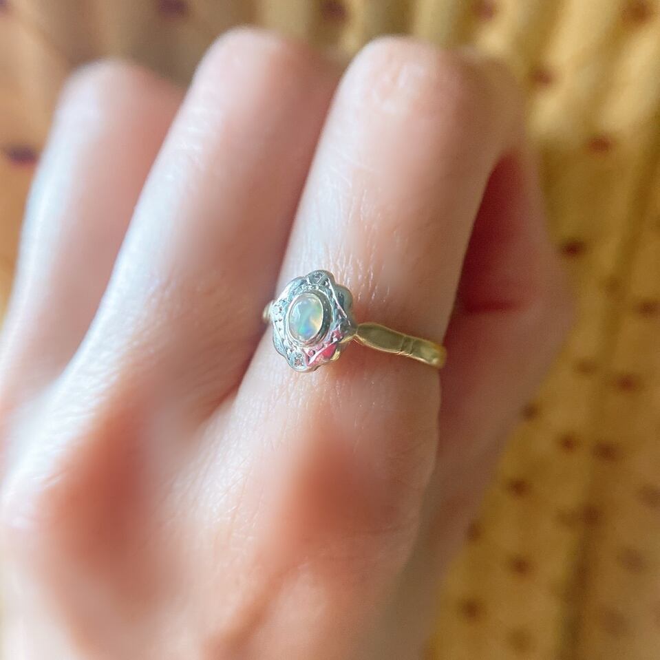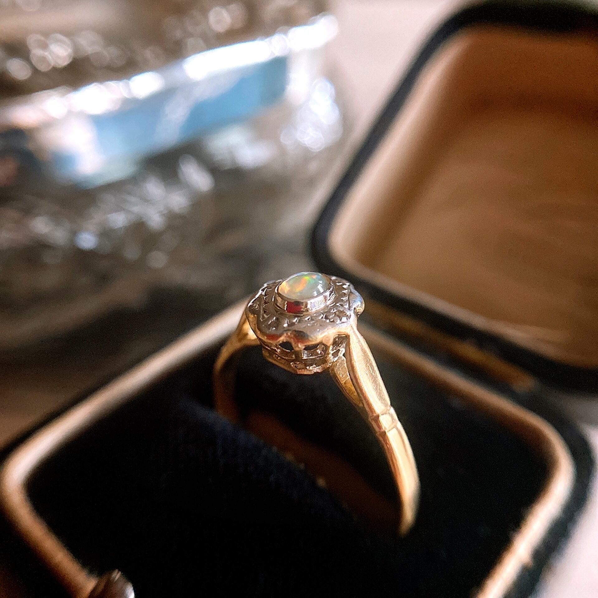 アンティークオパールの一粒リングは、意外と見つけにくいので、是非ご検討頂きたいひと品です。