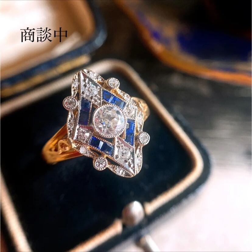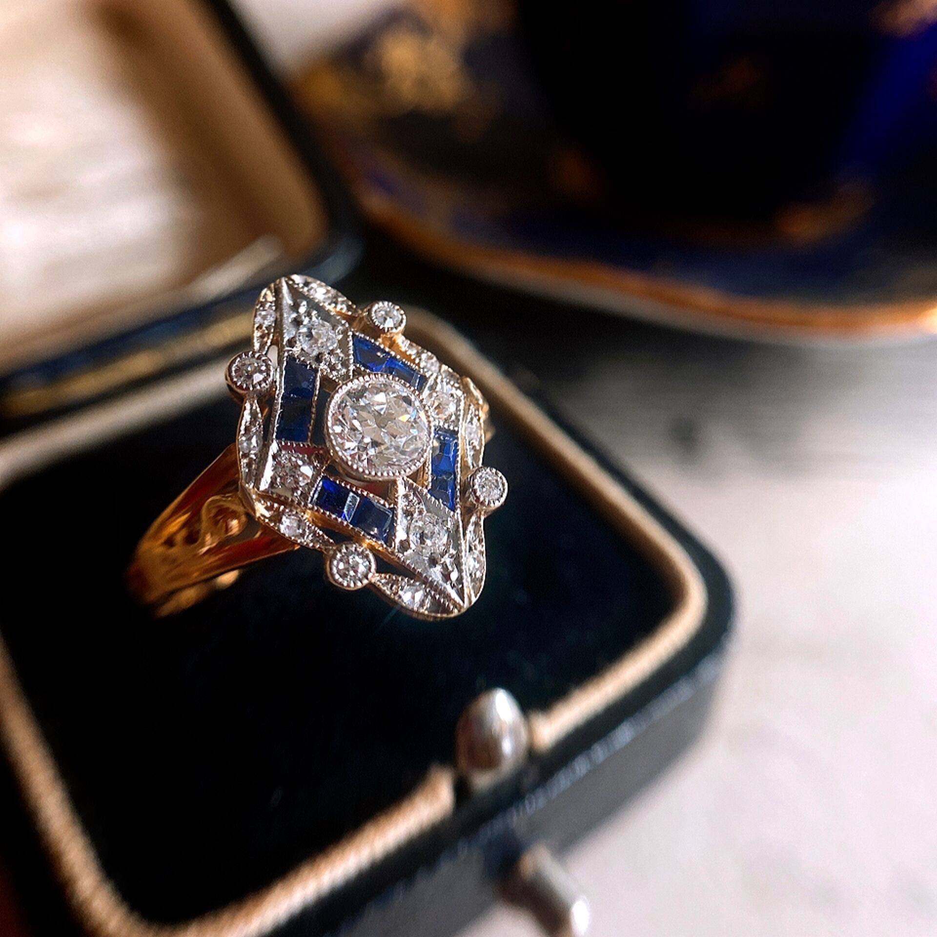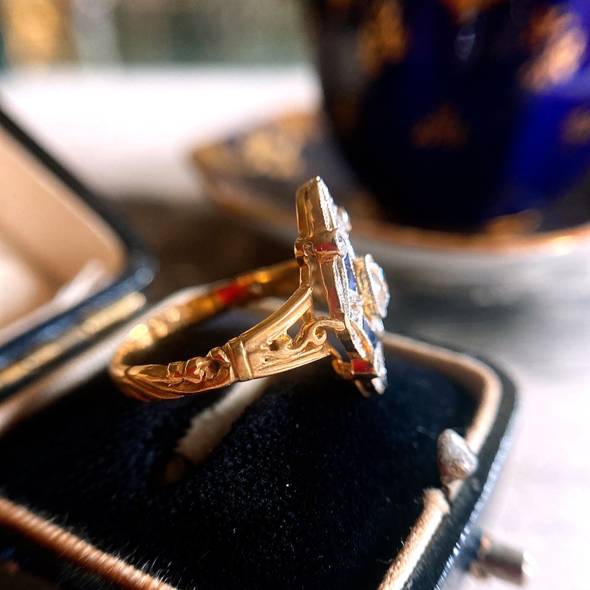 オールドヨーロピアンカットダイヤモンド&カリブレカットサファイアデコラティブリング