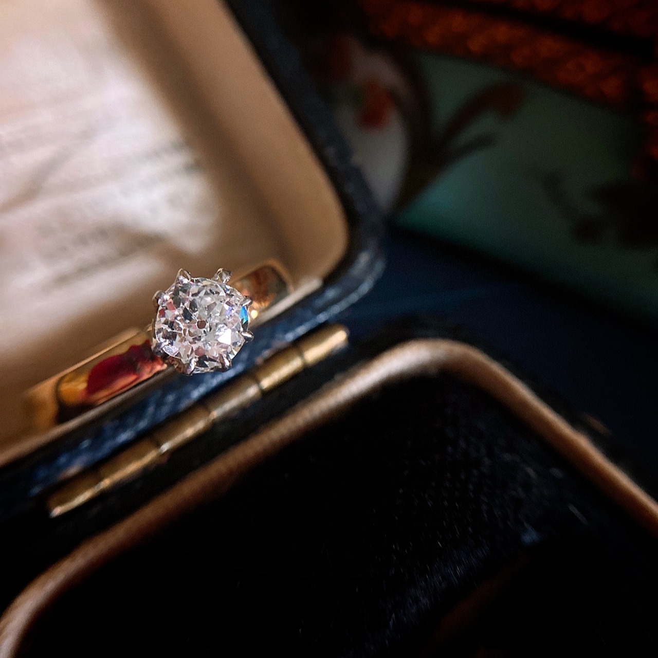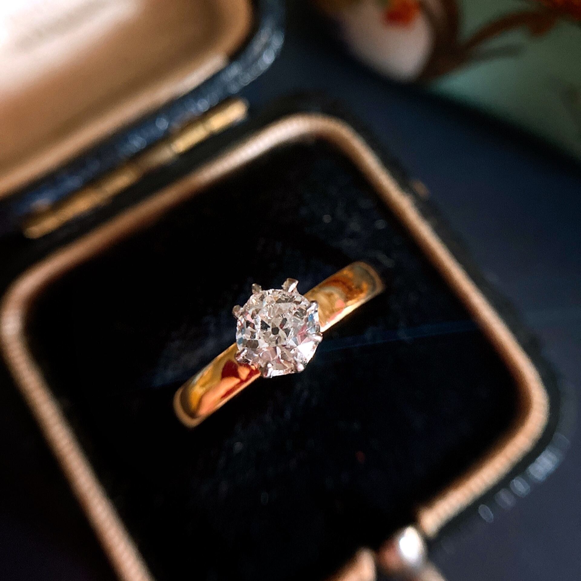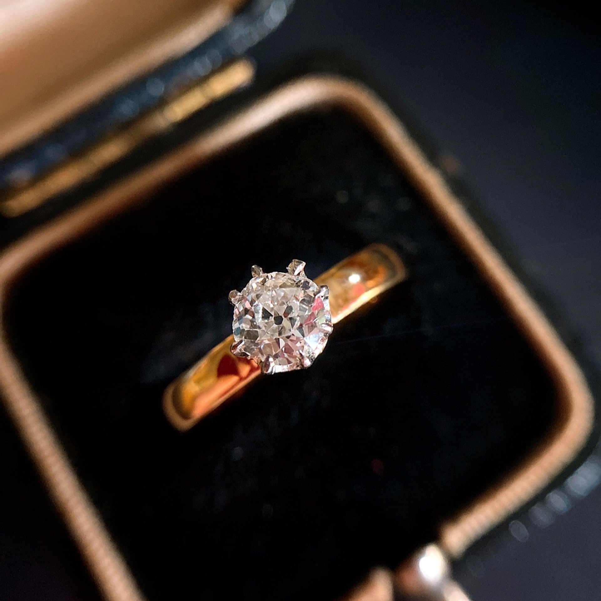 オールドヨーロピアンカットダイヤモンドソリテールリング
