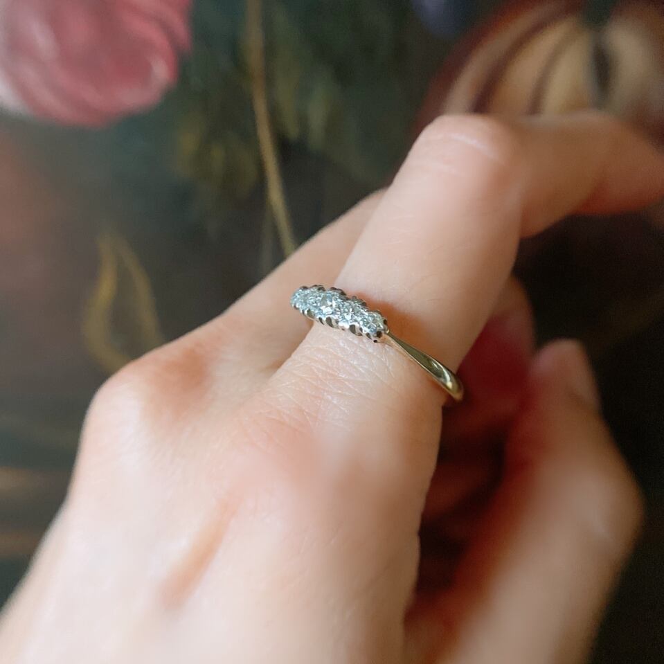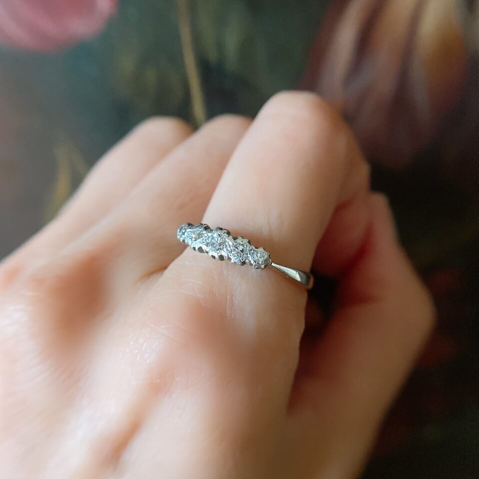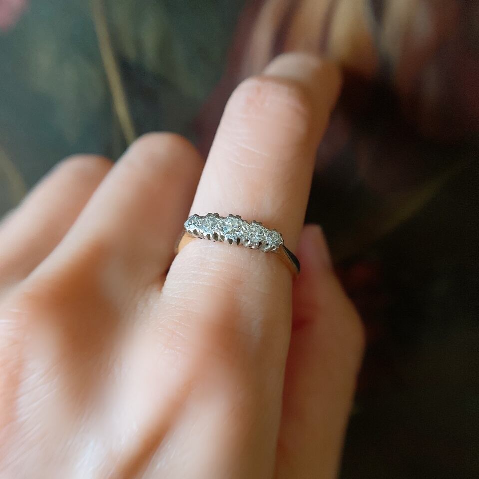 小さな小さなダイヤモンドファイブストーンリング。