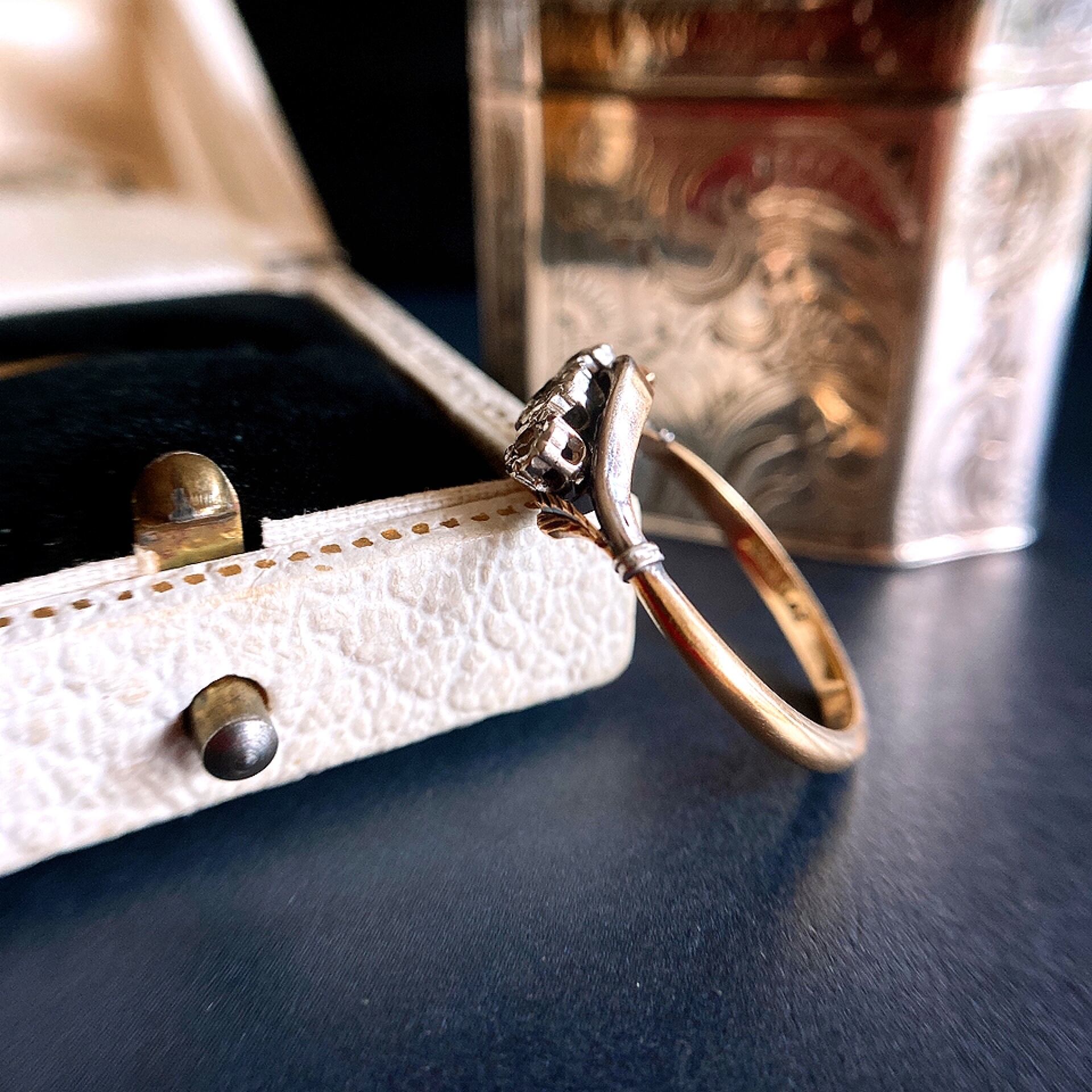 アンティークリングならではの落ち着いた雰囲気は華奢なリングにしっとりした輝きをもたせていますね。