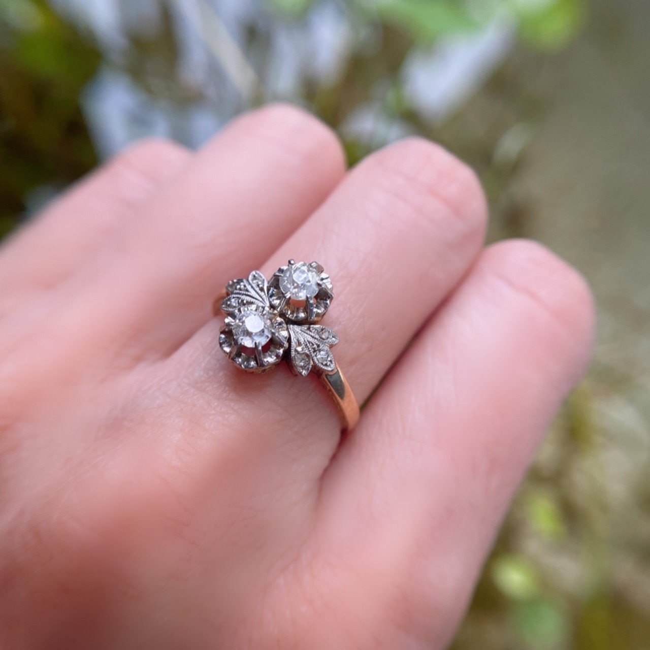 2石のオールドマインカットダイヤモンドはフワフワと風にのって踊る綿毛のダンサーのよう。