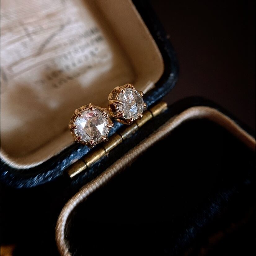 直径約5.5mm程とそれなりの大きがあるローズカットダイヤモンドはクローズドセッティングされており、現代のブリリアントカットとは違い、光を反射しキラキラと虹色に輝く姿は私達アンティーク好きを魅了させて離さないでしょう。