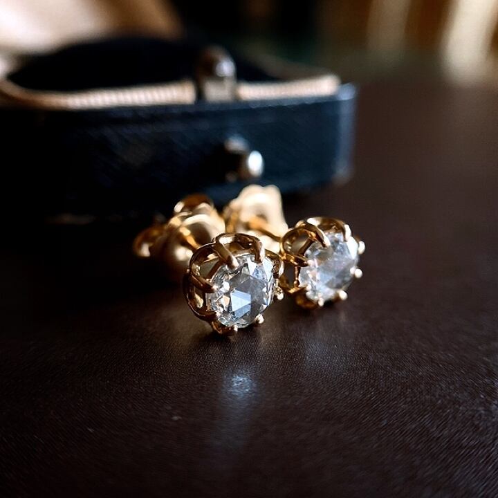 まるで耳元に一粒の星が舞い降りてきたような清らかな輝きが魅力的なダッチローズカットダイヤモンドピアスのご紹介です。