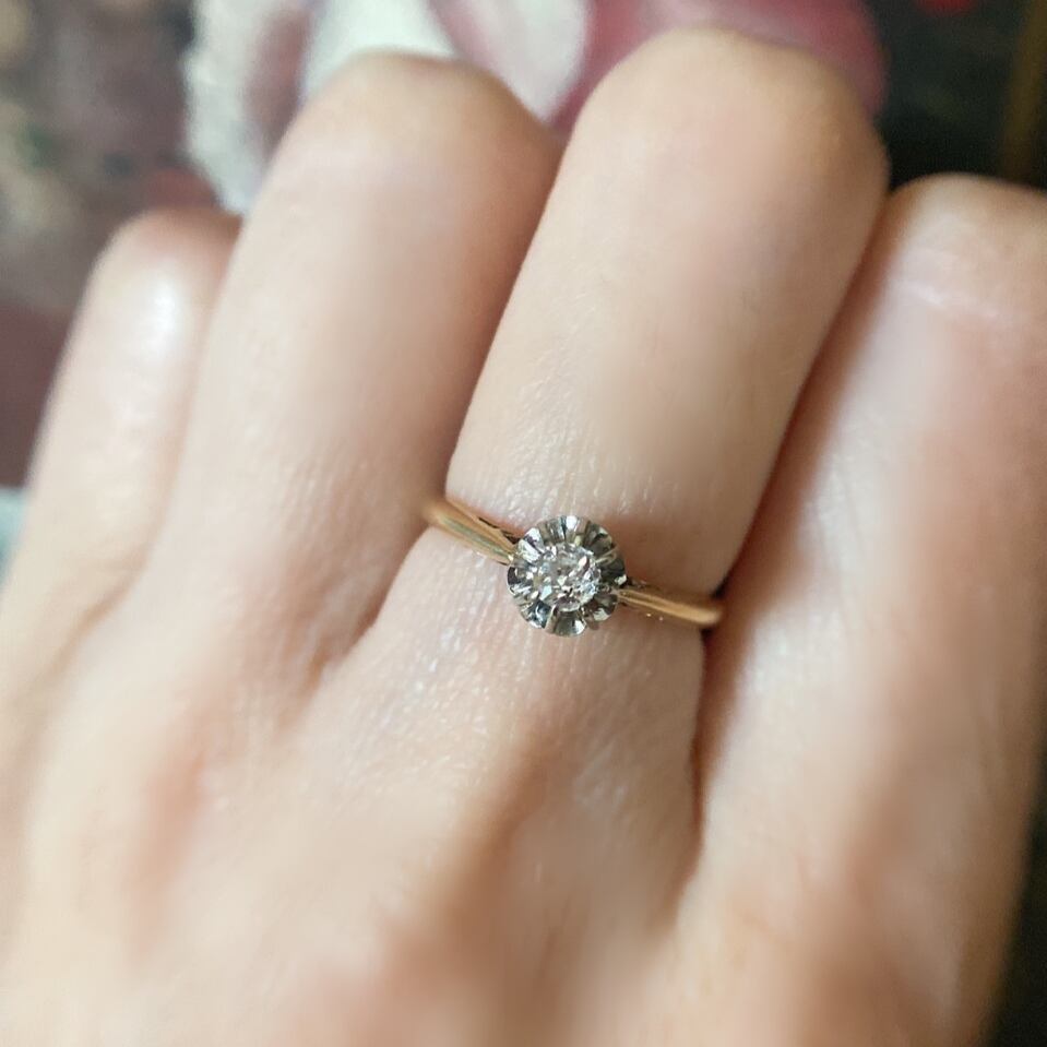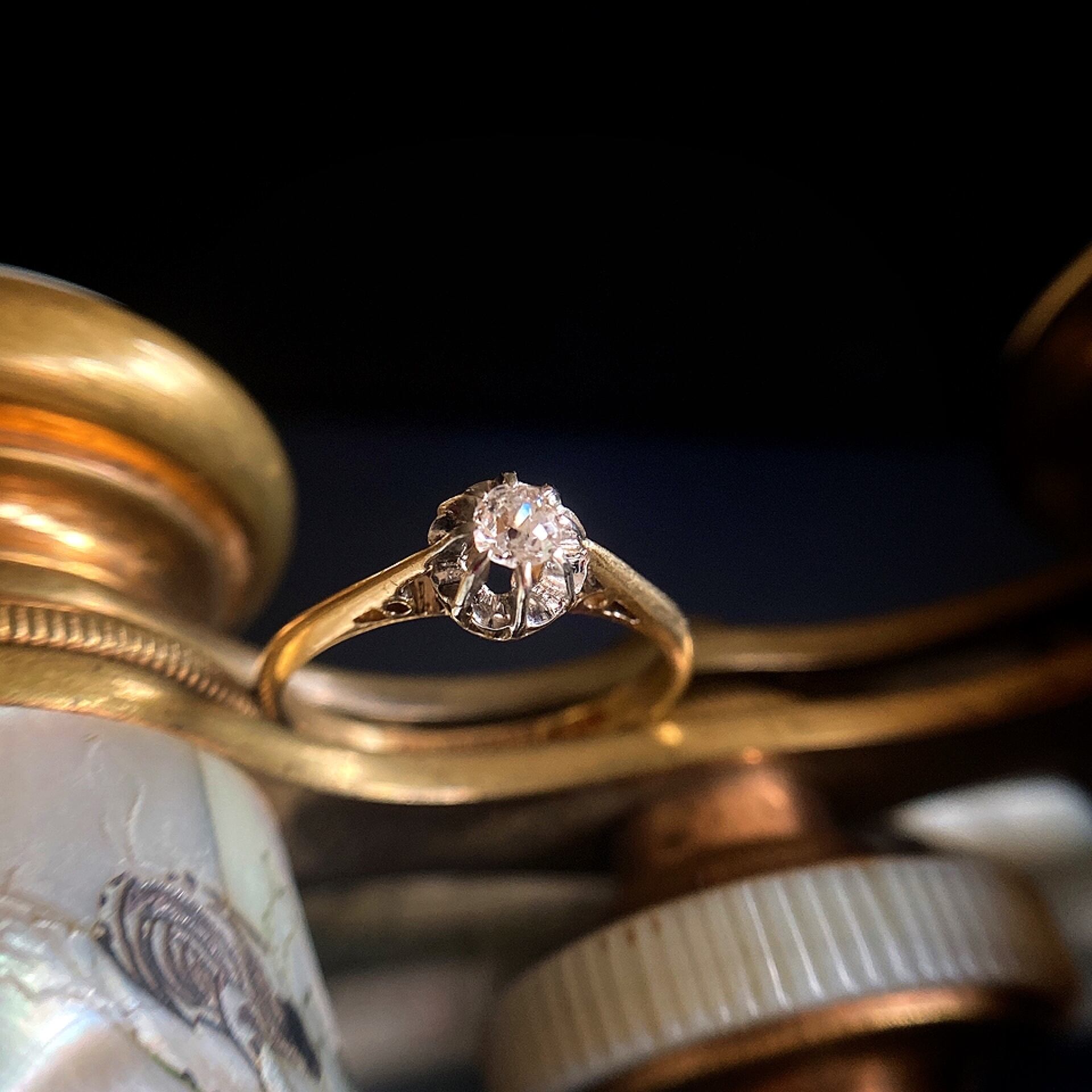 バターカップセッティングオールドマインカットダイヤモンドソリテールリング