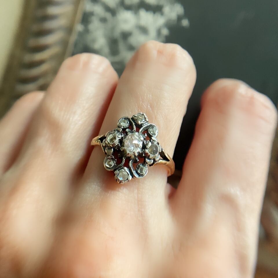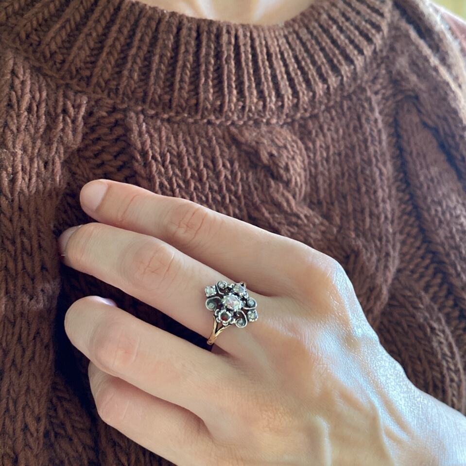 ローズカットダイヤモンドヴィクトリアンリング