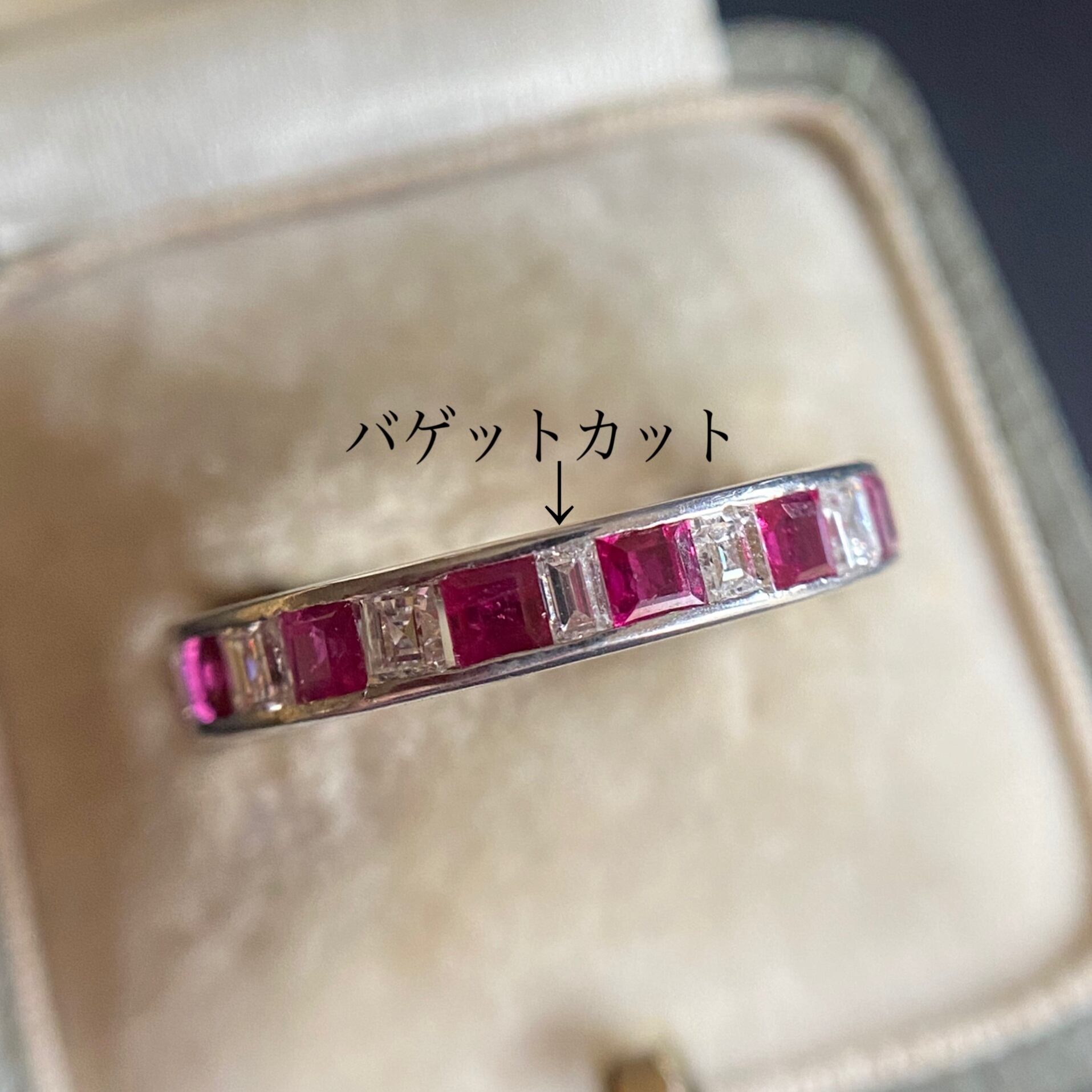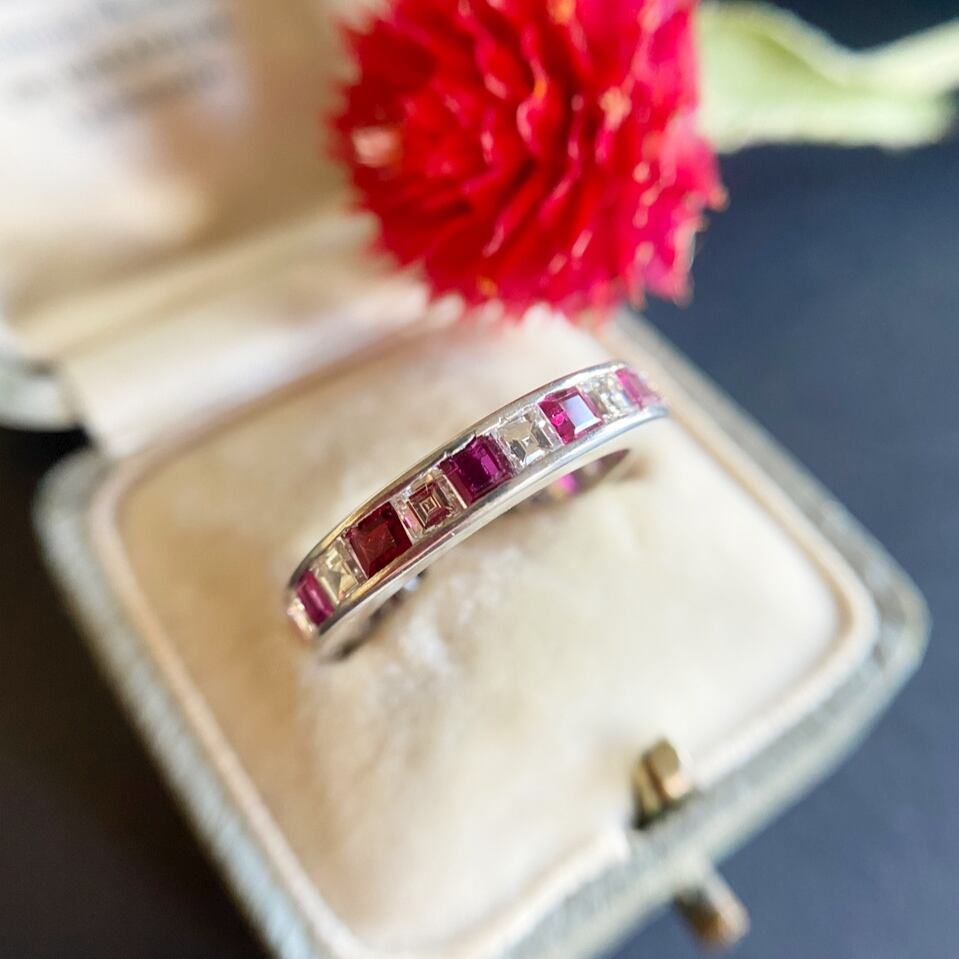ナチュラルルビーカリブレカット&アッシャーカットダイヤモンドアールデコエタニティープラチナリング
