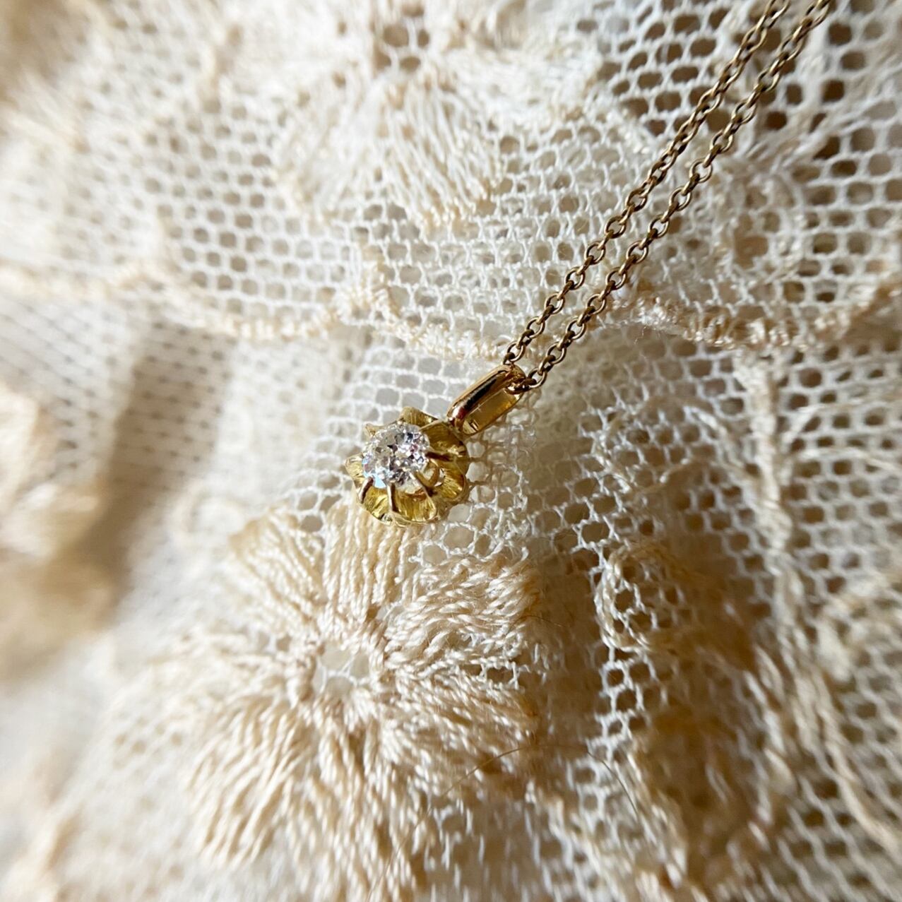 (バターカップ)をかたどった台座にセットされた小さなオールドヨーロピアンカットダイヤモンド。