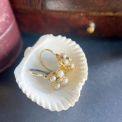 フックを耳の後ろから前に通してカチッと装着する「ドルムーズ」と呼ばれるピアスですが、このタイプの物で頻繁に出会うのは小さな一粒パールの物ですね。