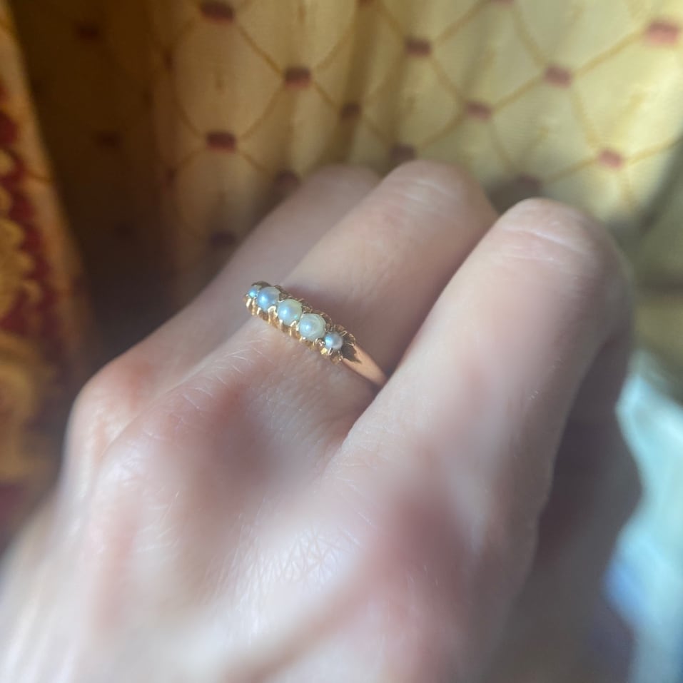 小さなナチュラルパールのファイブストーンリング
