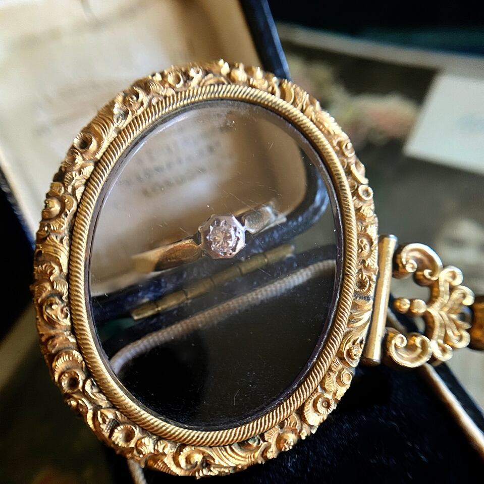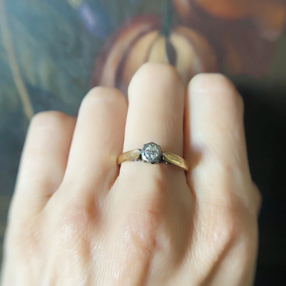今のように整いきらないカットだからこその、今のダイヤモンドと比べると少し暗めの輝きも、その全てが素朴で素敵なソリテールリングです。