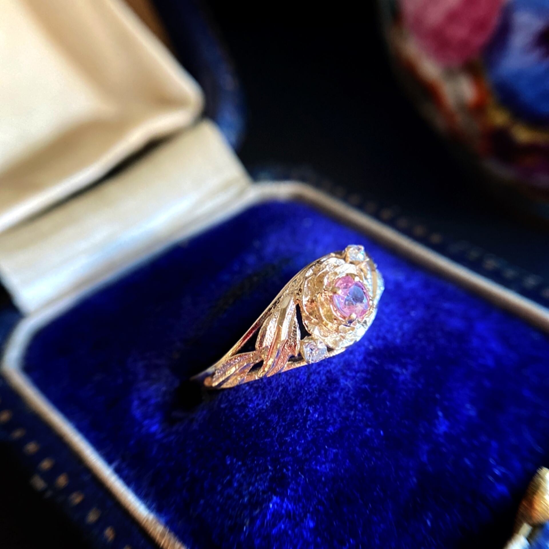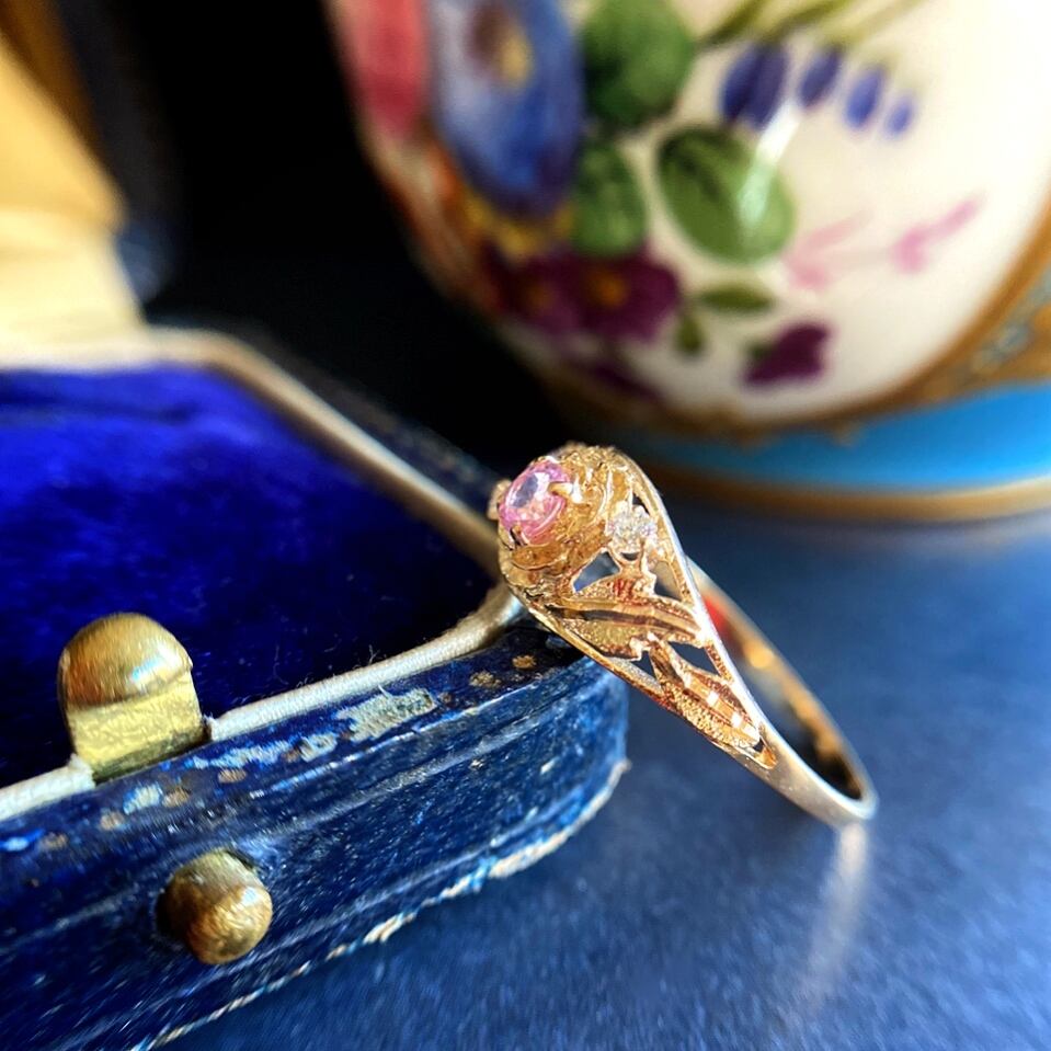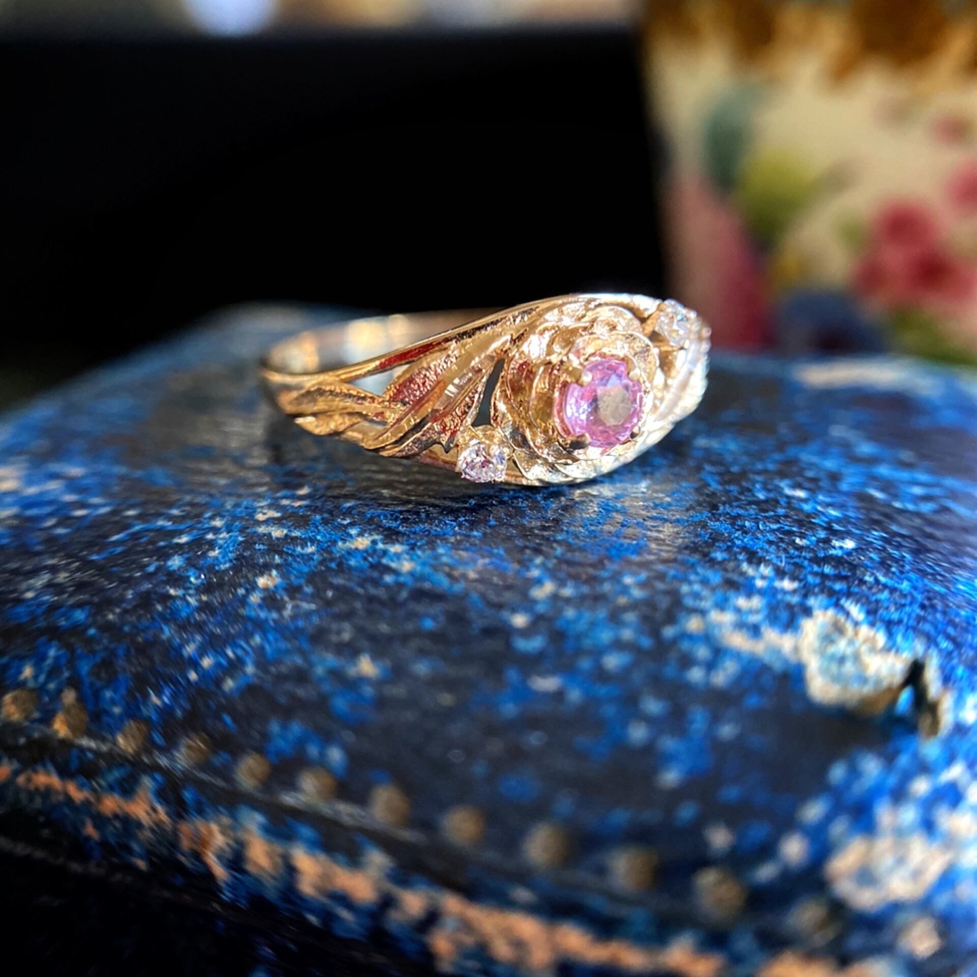 ピンクトルマリン&ダイヤモンド野薔薇のリング