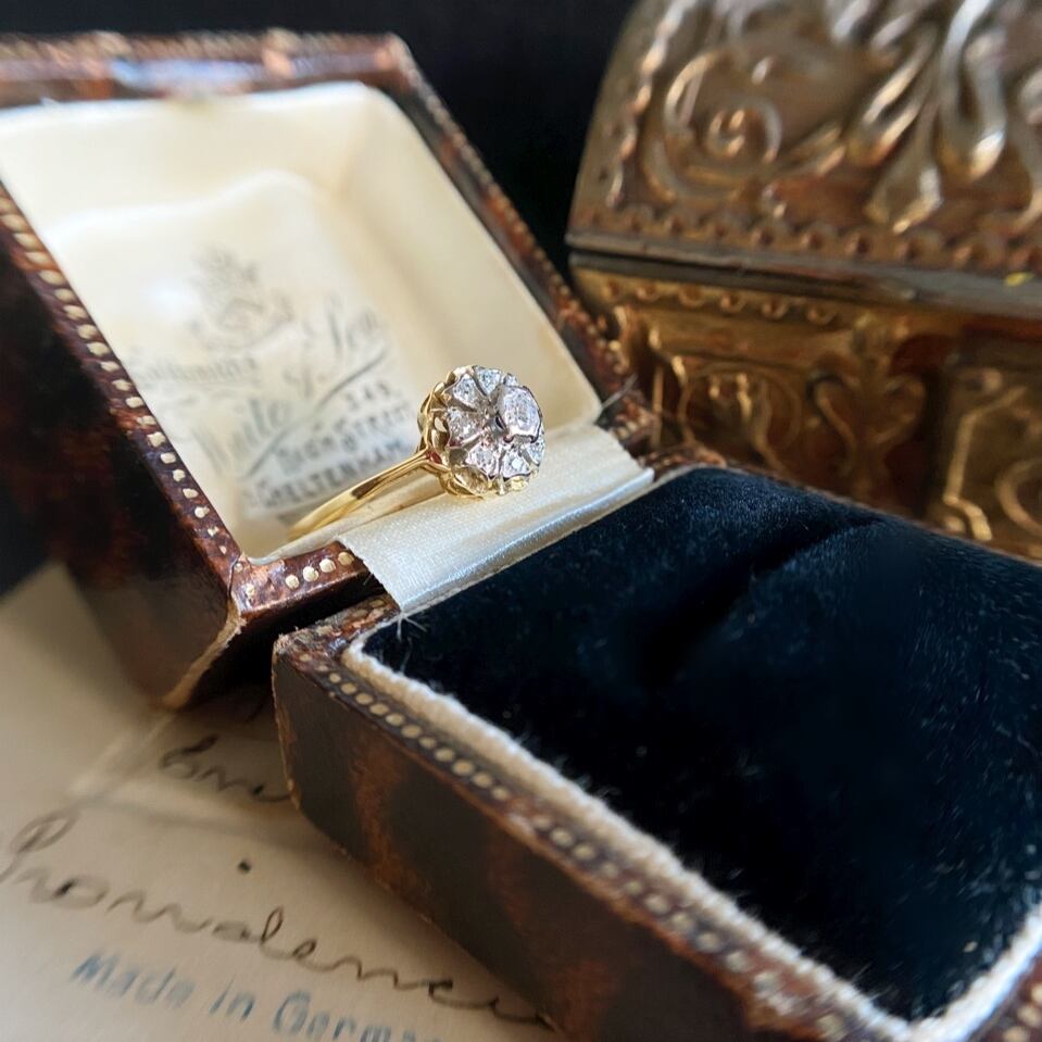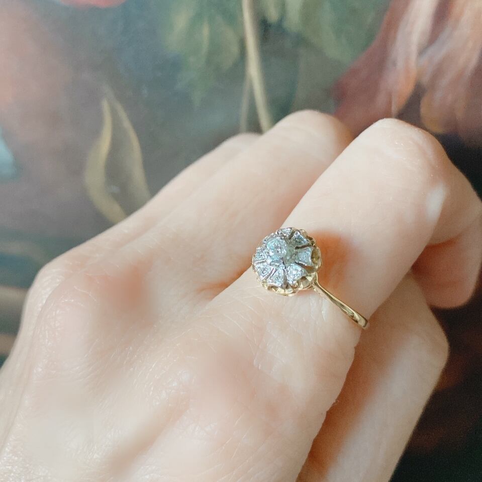 一輪の花のような、可憐な輝きのダイヤモンドクラスターリング。