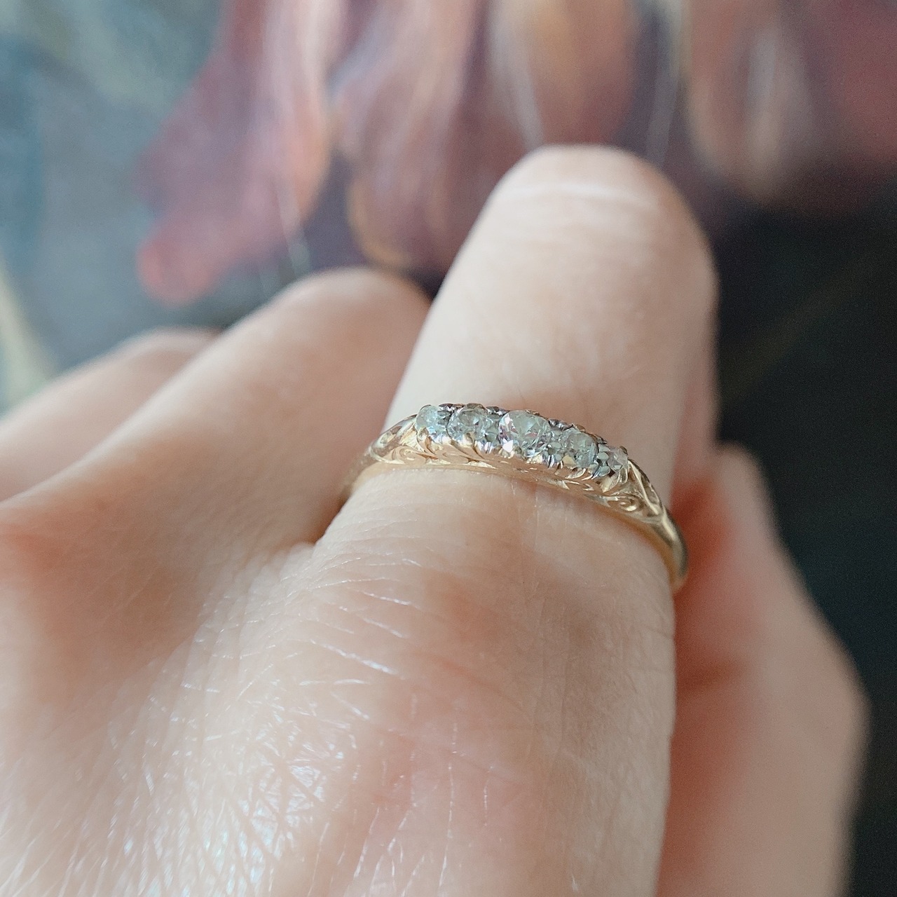 オールドカットダイヤモンドファイブストーンリング