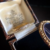 ダイヤモンドはシングルカットとオールドヨーロピアンカットの中間のようなファセットの少ない味わい深いオールドカットになっていて、その5石が織りなす小さな光のグラデーションは繊細で、柔らかく、今のブリリアントカットダイヤモンドには決して望めない穏やかな煌めきにホッとするひと品です。