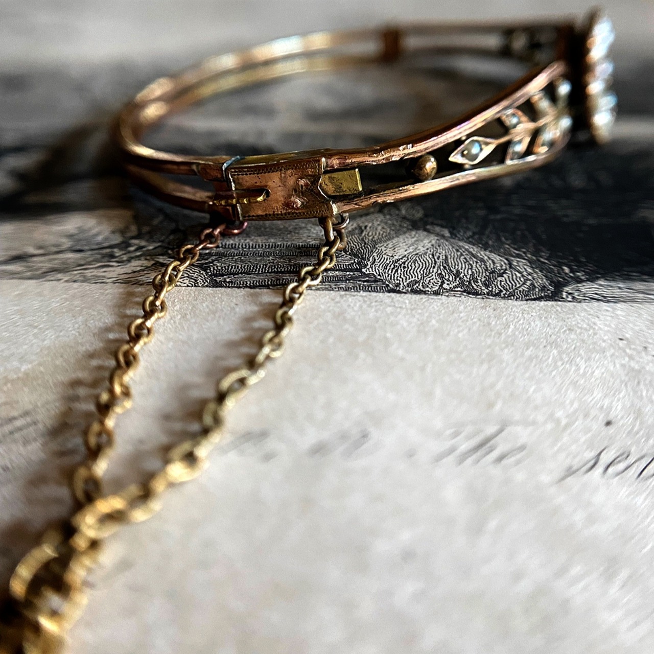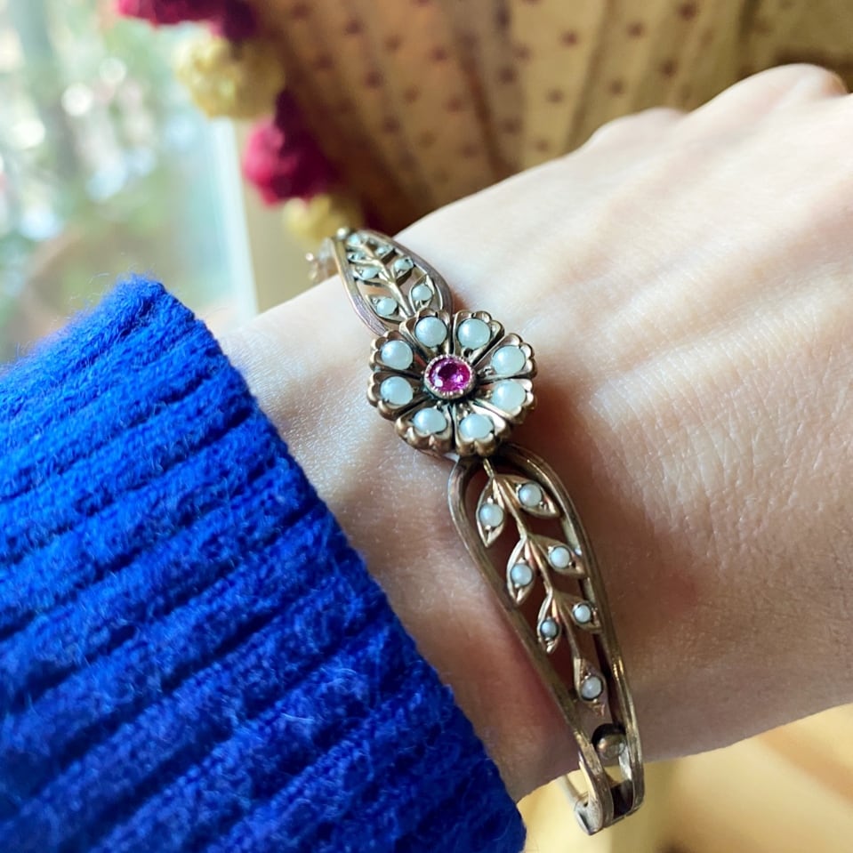 ピンクサファイアとパールのバングルです。