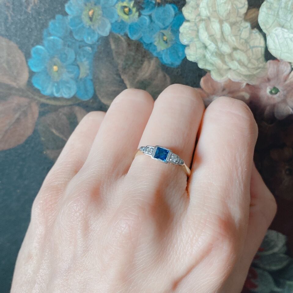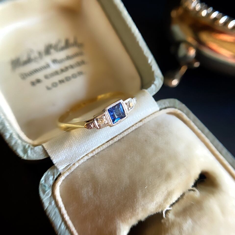 サファイア&ダイヤモンドスリーストーンアールデコリング