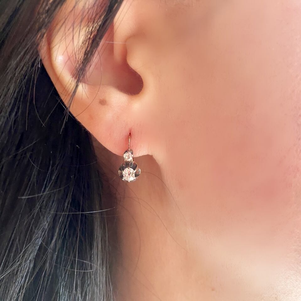 大小4粒のオールドマインカットダイヤモンドが耳元で煌めくロシアンピアス。