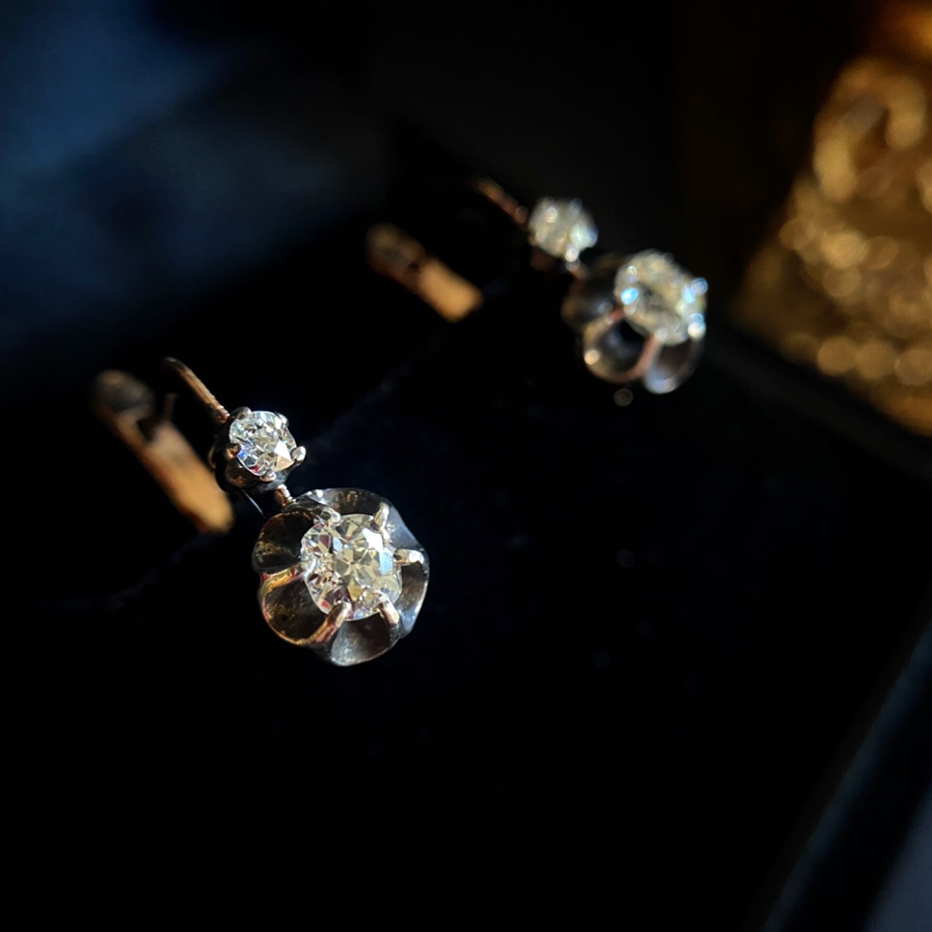 フランスのアンティークダイヤモンドピアスはお持ちの方も多いとおもいますが、インペリアルロシアの物をお探し中の方は是非滅多に出ませんのでコレクションの一つに加えてみませんか。