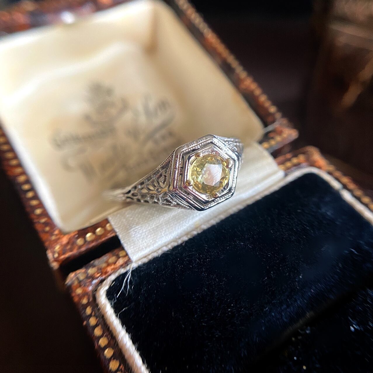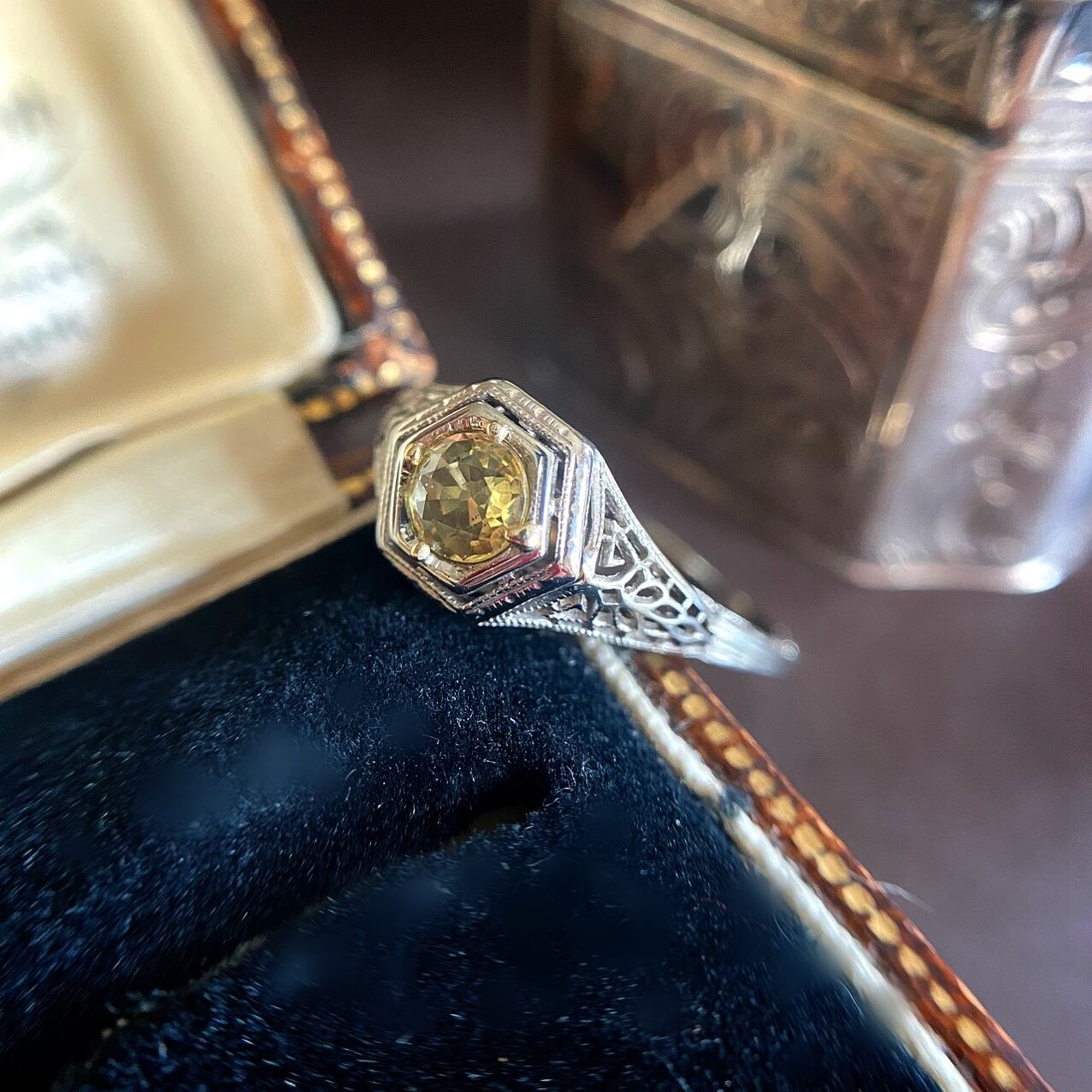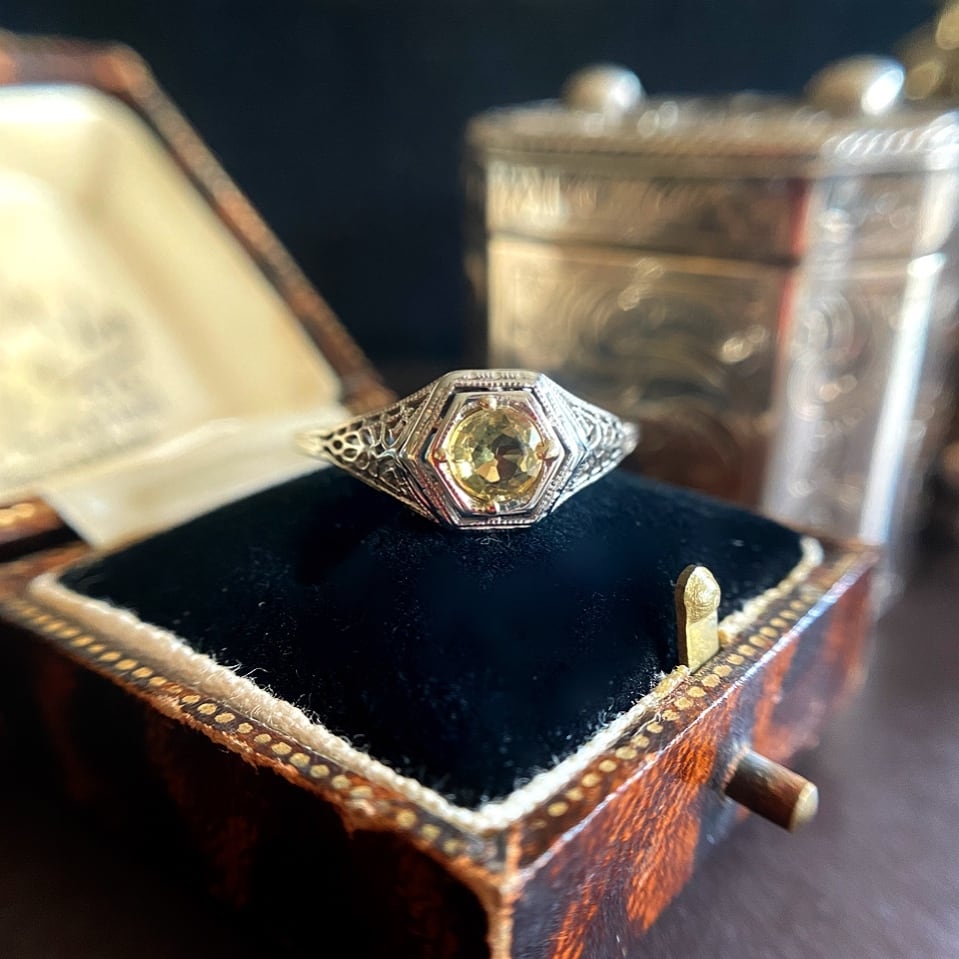(商談中)非加熱イエローサファイア アールデコフィリグリーリング
