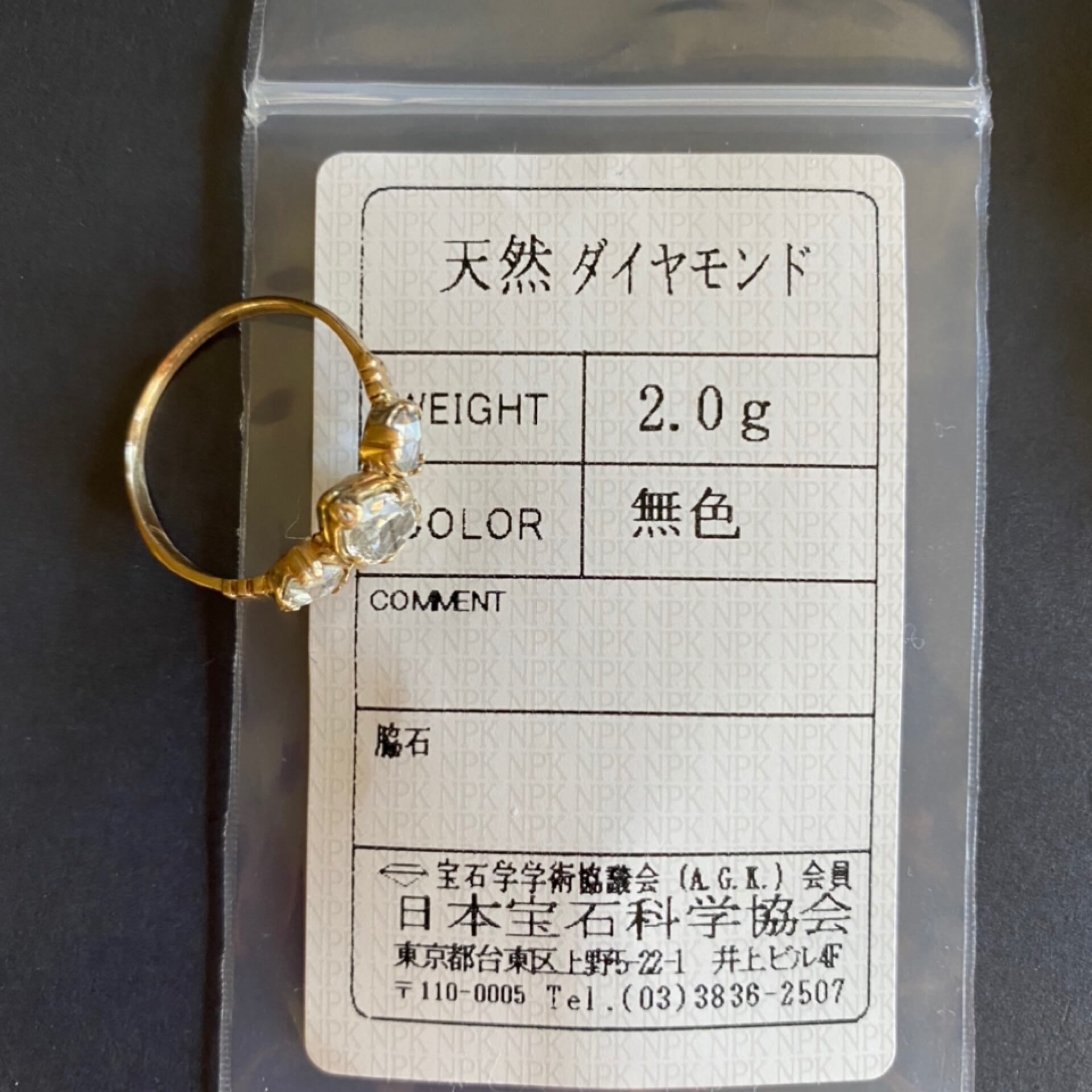 両隣のトライアングルシェイプのローズカットダイヤモンドも約4mmとあり、中心のダイヤモンドが大きい為に目立っていませんがシングルストーンとしても立派に役割を果たしてくれるくらいの名脇役です。